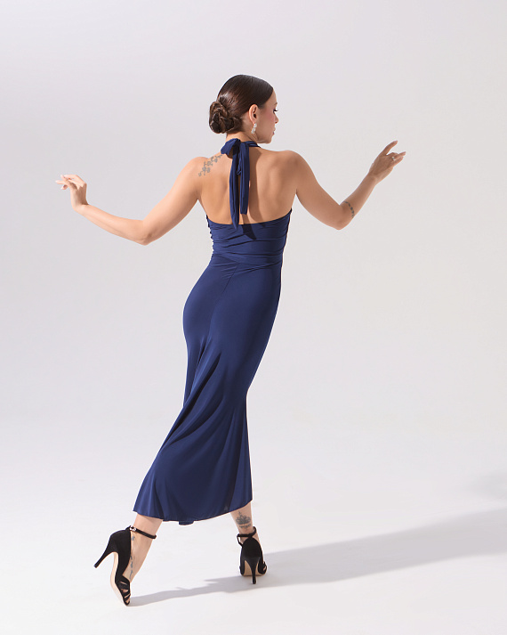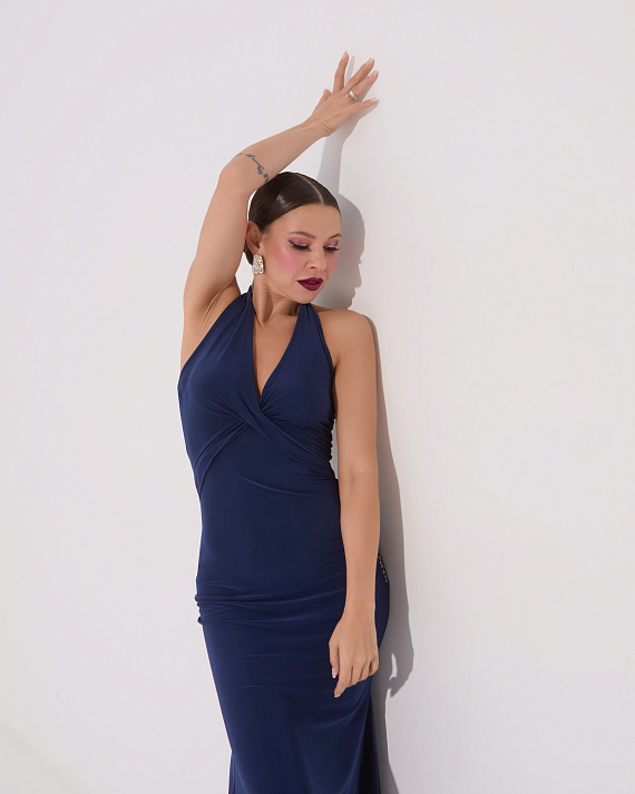 Платье для танго с перекрутом на груди (темно-синий)