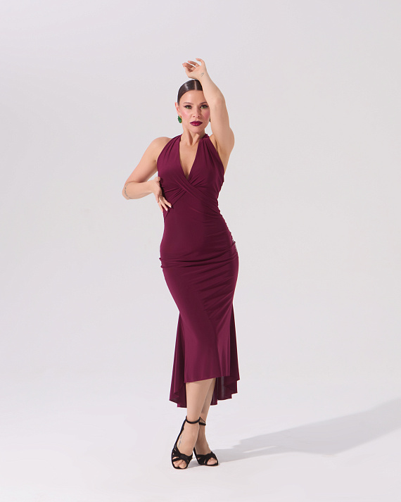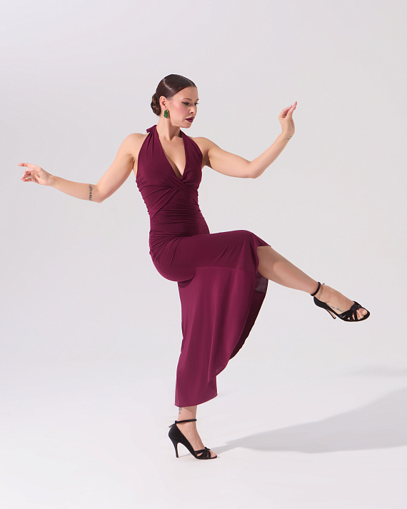Платье для танго с перекрутом на груди (бургунди)