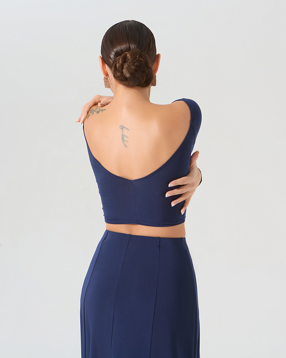 Блузка с заниженной линией плеча (темно-синий)