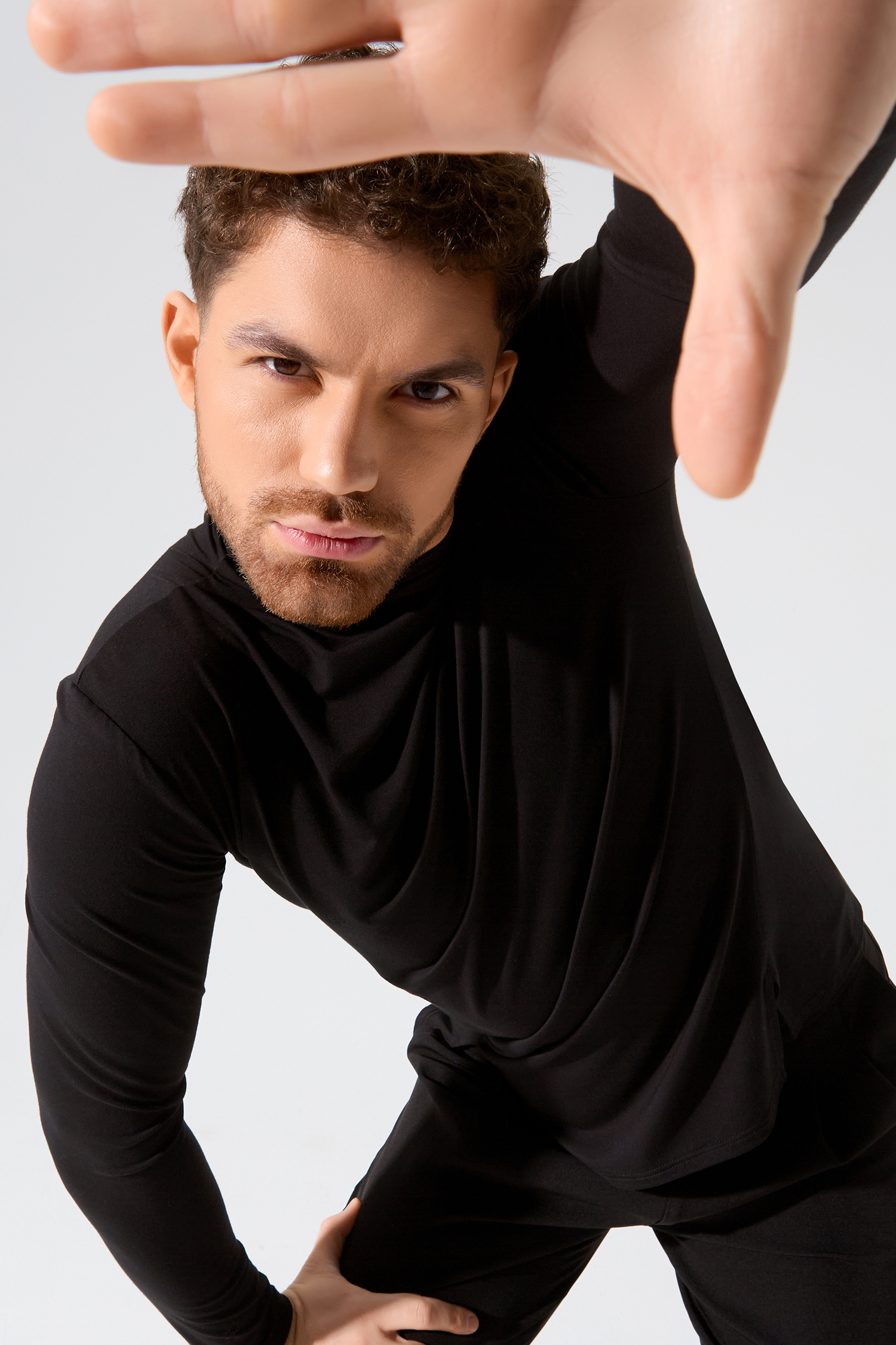 Мужская водолазка с разрезами от бренда танцевальной одежды FARANDOLE — универсальная модель как для танцев, так и для повседневной жизни. Дышащий материал «бамбук» очень комфортный тактильно и практичен в носке. Сочетайте водолазку с любыми брюками из мужской коллекции. В коллекции CHARISMA брюки представлены в черном и белом цвете.