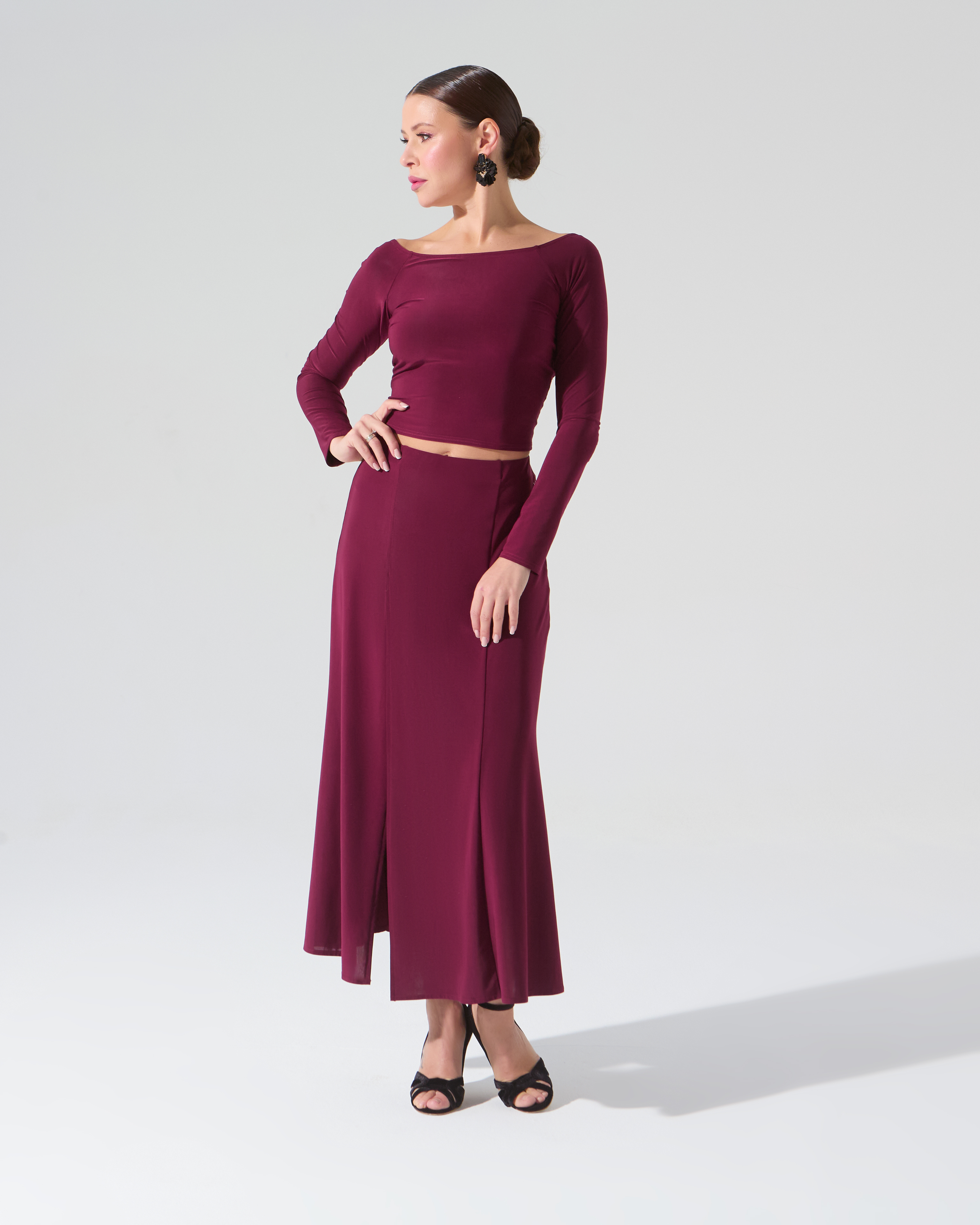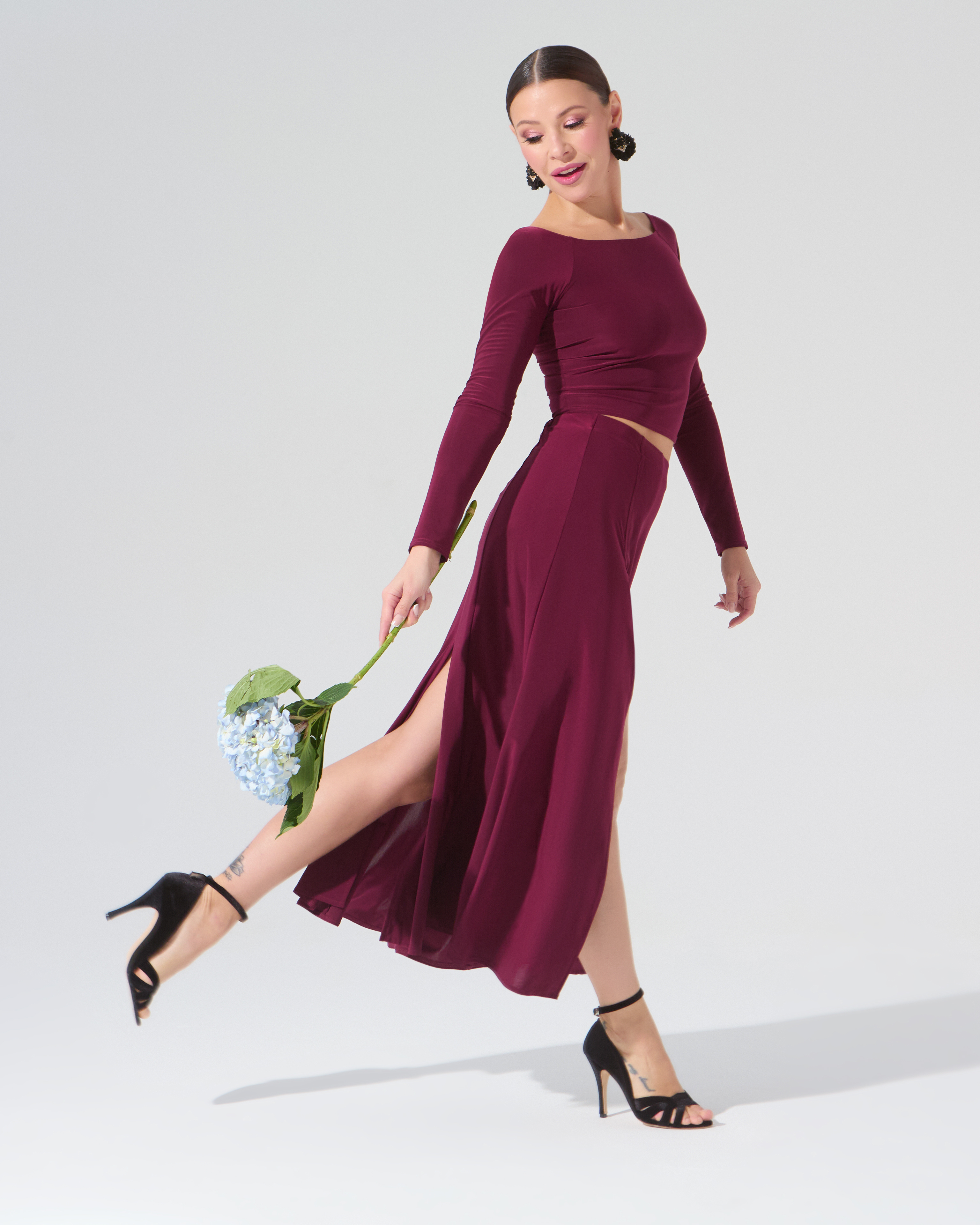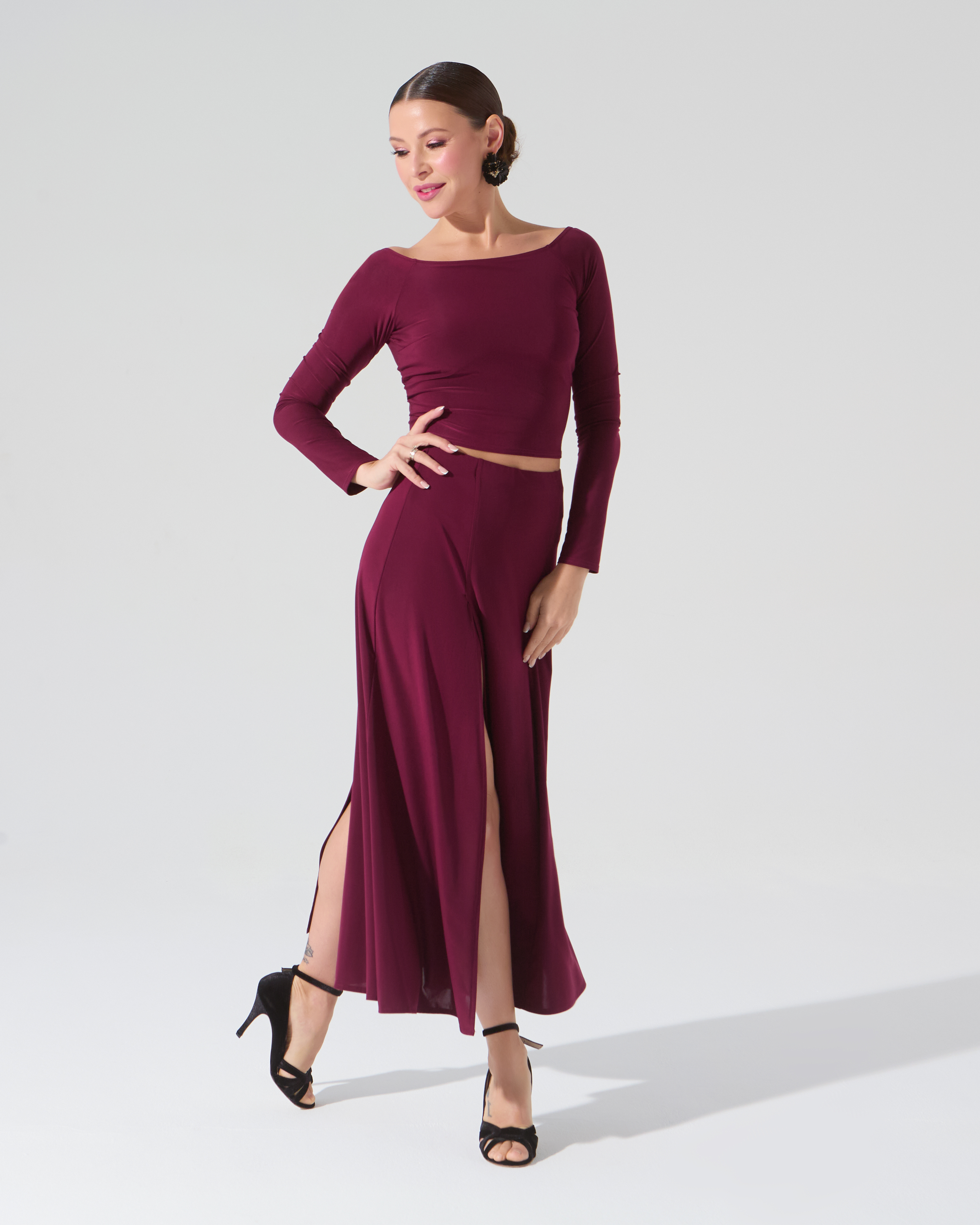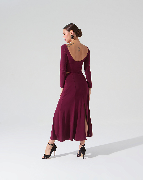 Юбка для танго со шлицей (бургунди)