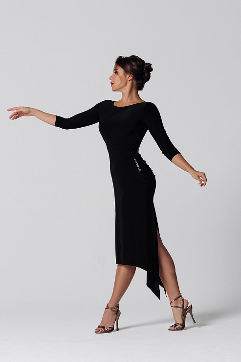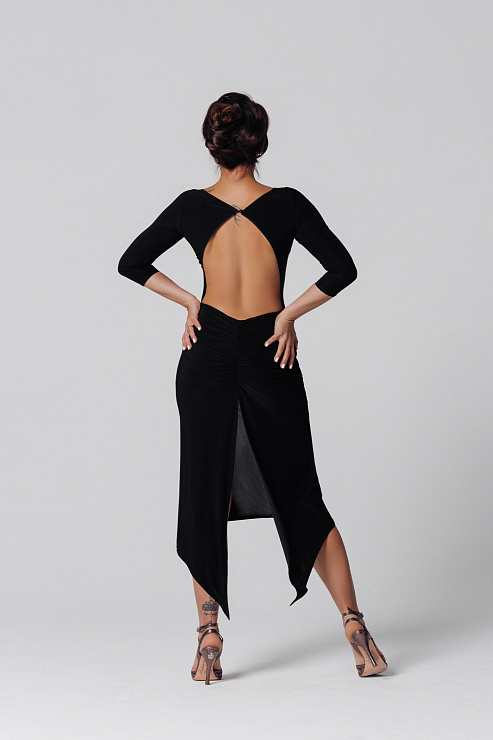 Платье черное для аргентинского танго с открытой спиной и сборкой