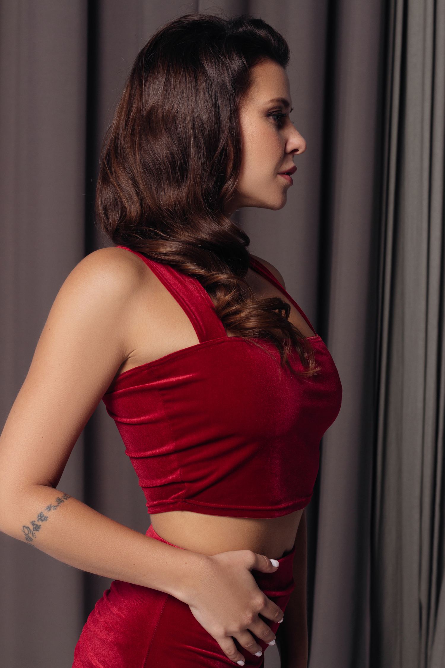 Топ бархатный бордовый с широкими бретелями
