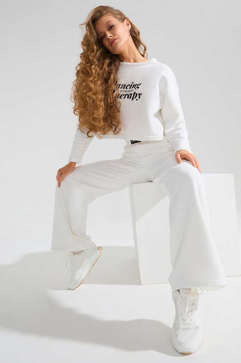 Брюки широкие с высокой посадкой (тофу)
