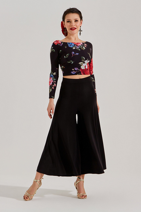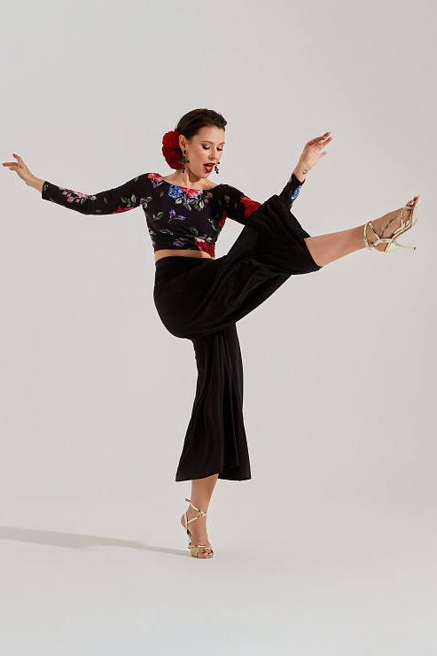 Юбка-брюки — очень стильная и комфортная модель для тренировок. Ширина брючин дает ощущение легкости и женственности, как в юбке, но в то же время брюки дают больше свободы в движениях в танце.