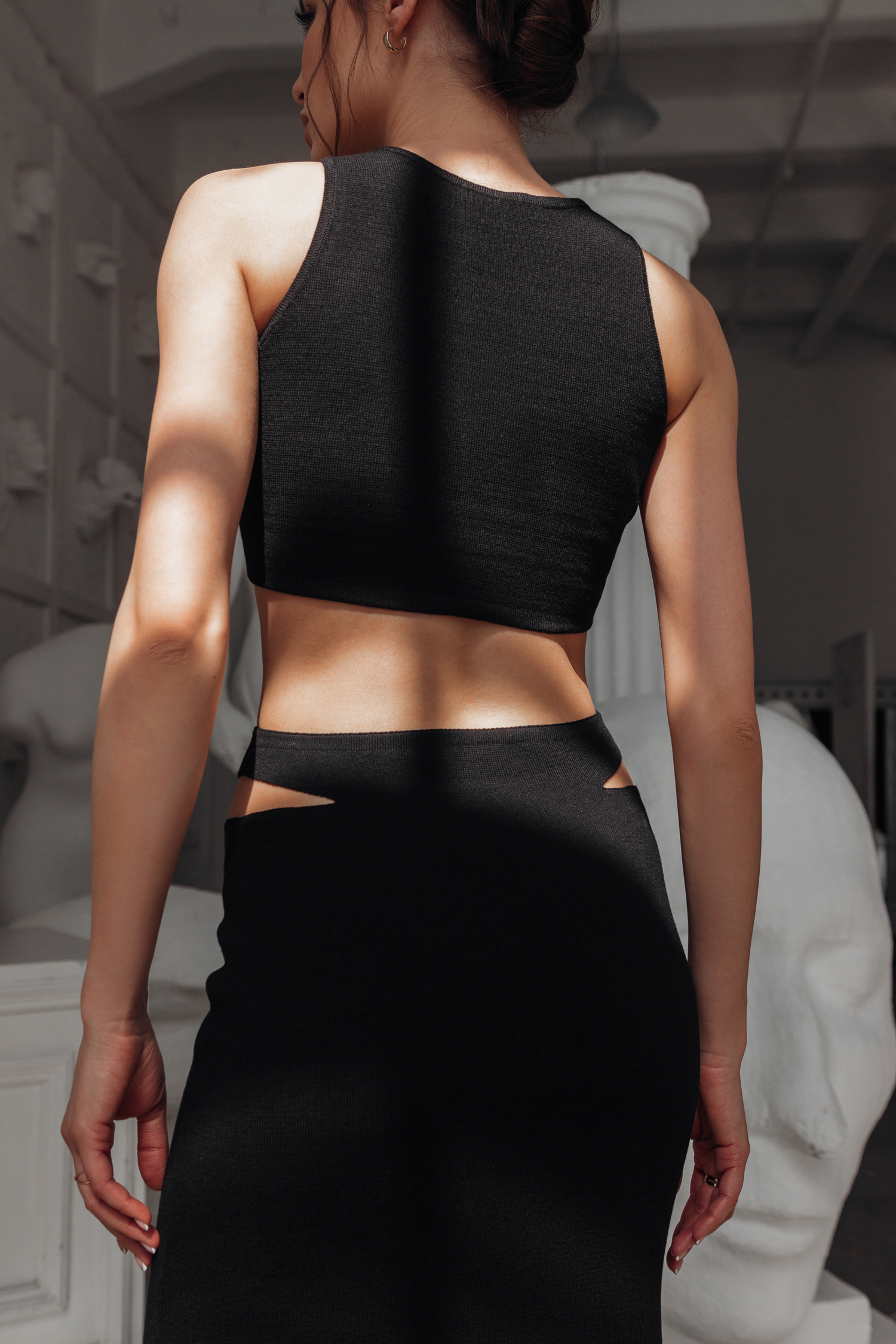 В создании женственного образа вещам с открытыми плечами нет равных. Пример тому — этот черный базовый топ из коллекции лето 2022 года. Для лаконичной модели мастера бренда использовали мягкий и приятный на ощупь трикотаж с большим содержанием вискозы. Трикотажный топ идеально облегает фигуру за счет эластана в составе материала. Топ идеально сочетается с вязаной юбкой макси и базовой мини юбкой из летней коллекции бренда.