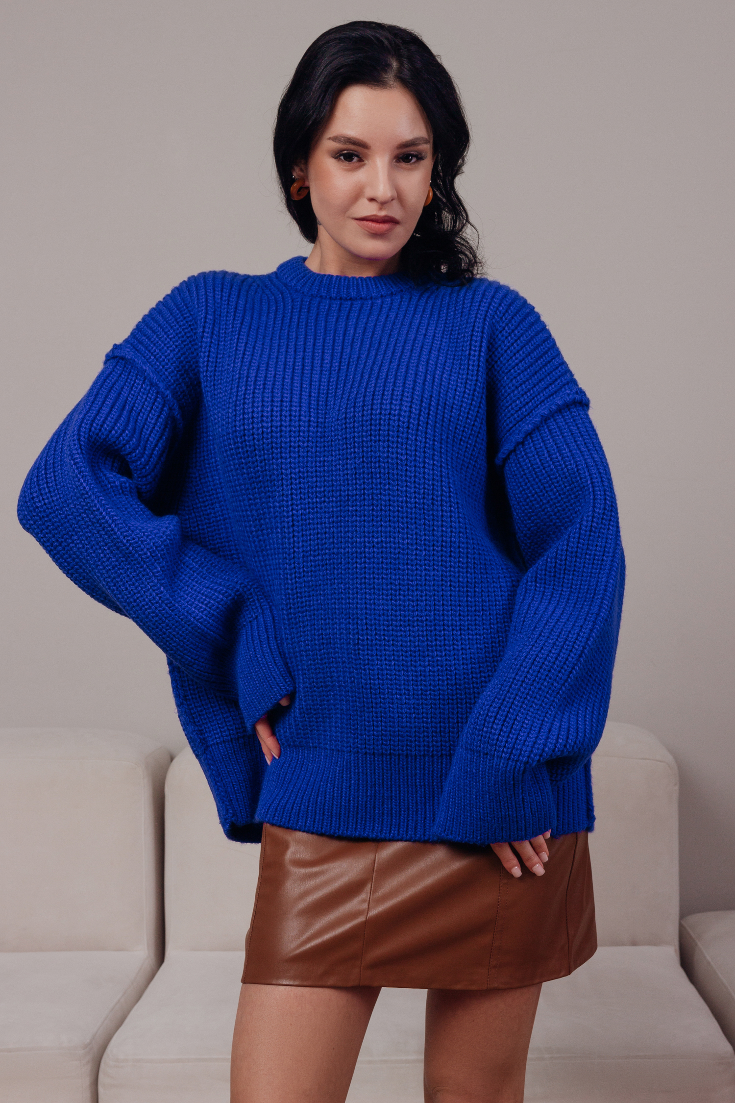 xДжемпер со швами наружу и объемной вязкой — базовая модель свободной посадки на фигуру. Мы выполнили джемпер из очень мягкой и приятной к телу пряжи с небольшим содержанием шерсти. Вещь очень теплая и согревающая в холодное время года. Самые трендовые цвета этого сезона — сочный зеленый, красный, ярко-синий, тиффани и небесно-голубой — на любой вкус и настроение.