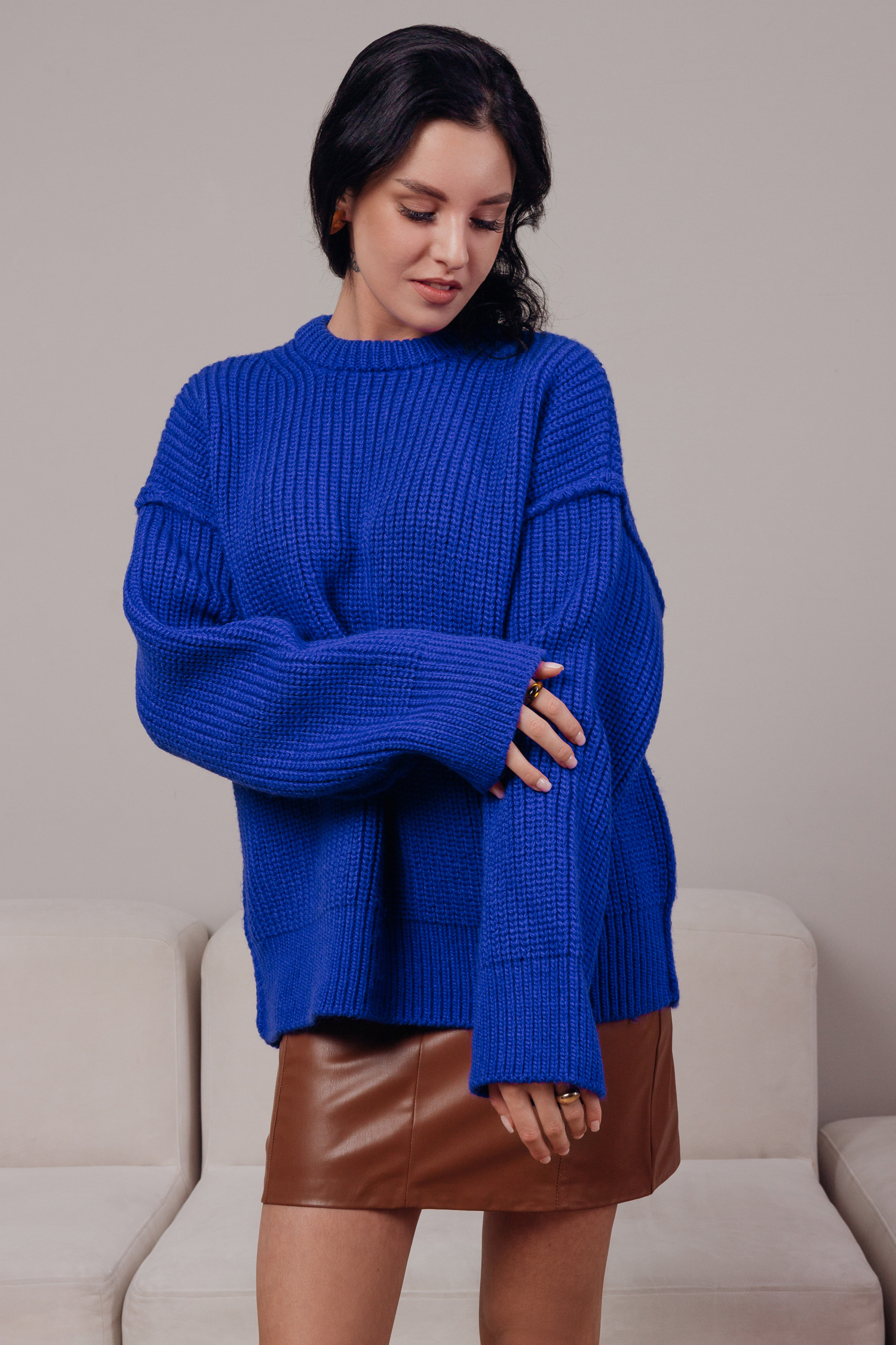 Джемпер швами наружу (синий)