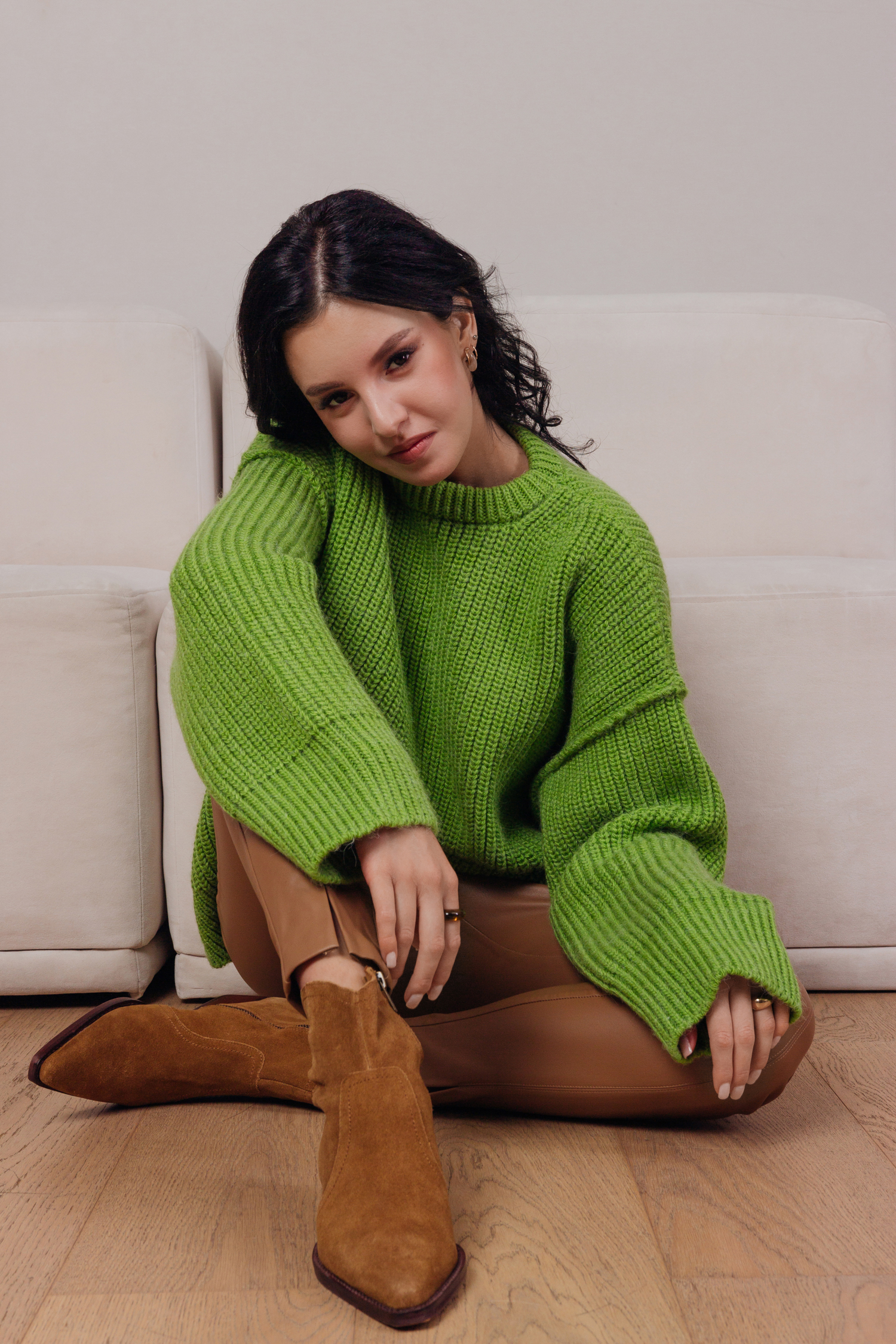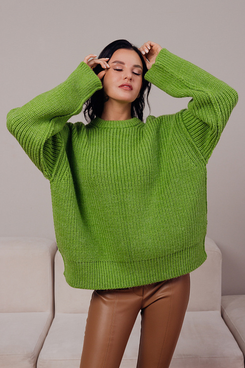 Джемпер со швами наружу и объемной вязкой — базовая модель свободной посадки на фигуру. Мы выполнили джемпер из очень мягкой и приятной к телу пряжи с небольшим содержанием шерсти. Вещь очень теплая и согревающая в холодное время года. Самые трендовые цвета этого сезона — сочный зеленый, красный, ярко-синий, тиффани и небесно-голубой — на любой вкус и настроение.