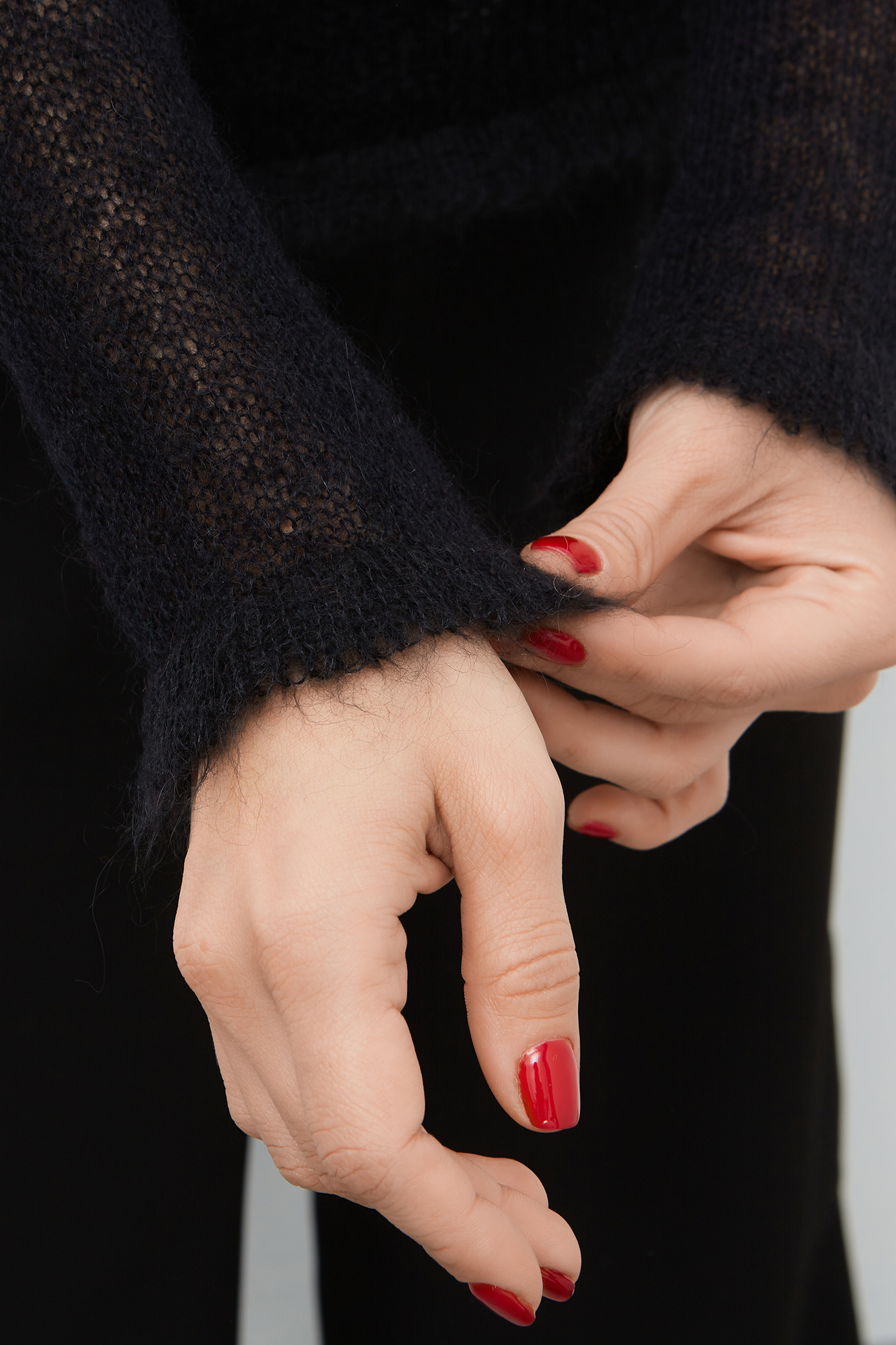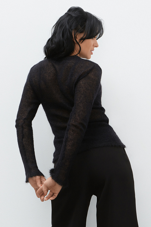 Мягкий и стильный полупрозрачный лонгслив из мохера станет акцентной частью образа. Сочетайте с шортами, джинсами, кожаной мини юбкой или брюками.