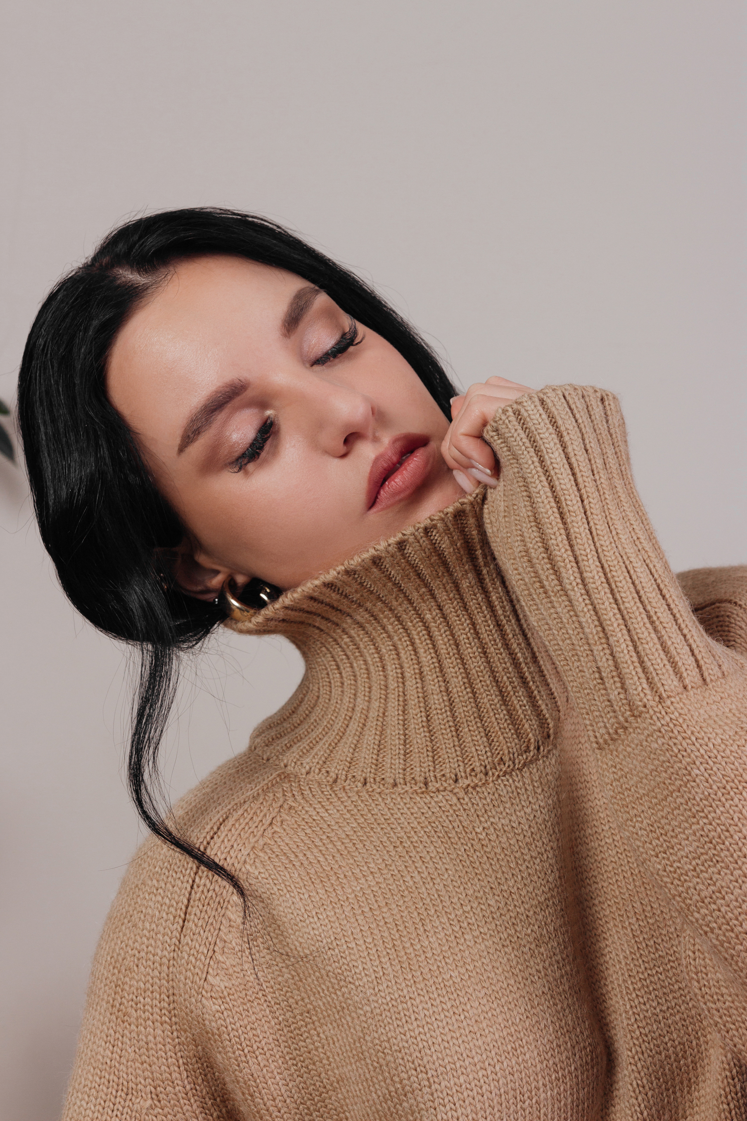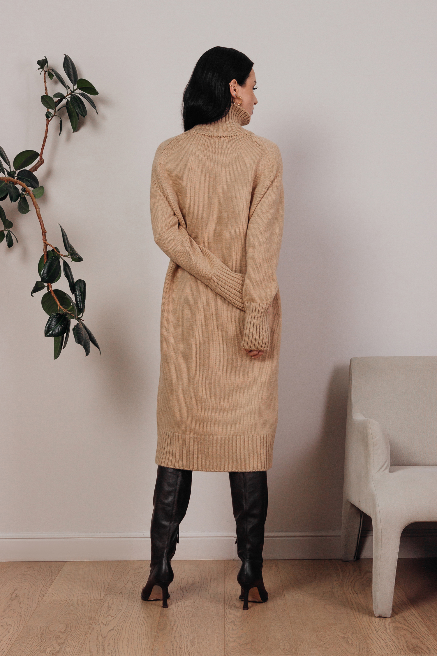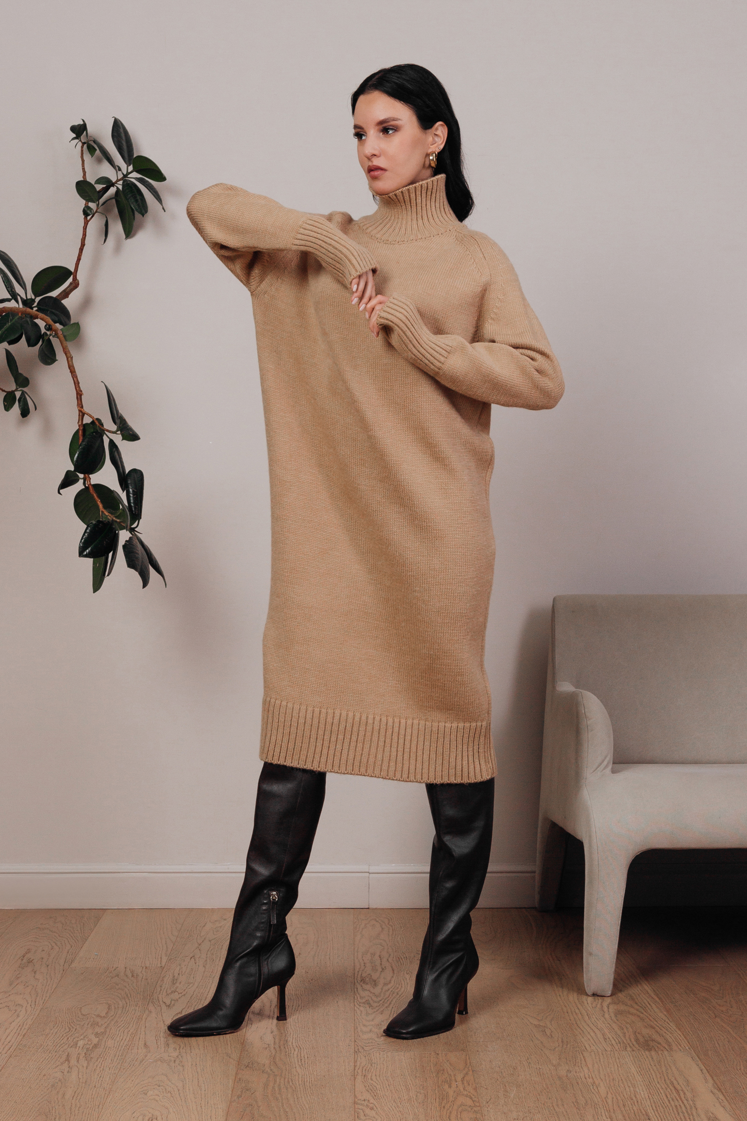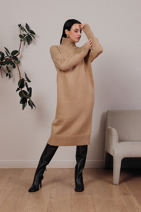 Платье трикотажное с воротом (бежевый)
