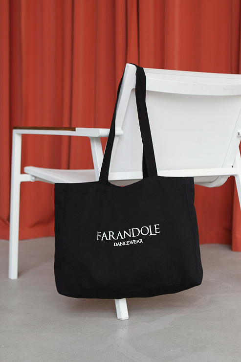 Сумка с логотипом FARANDOLE станет вашим идеальным спутником на любую тренировку. Вместительная и с длинными ручками, чтобы удобно было носить на плече. Размеры сумки: ширина — 42см, высота — 32см, ширина дна сумки — 9см, длина ручек — 72 см.