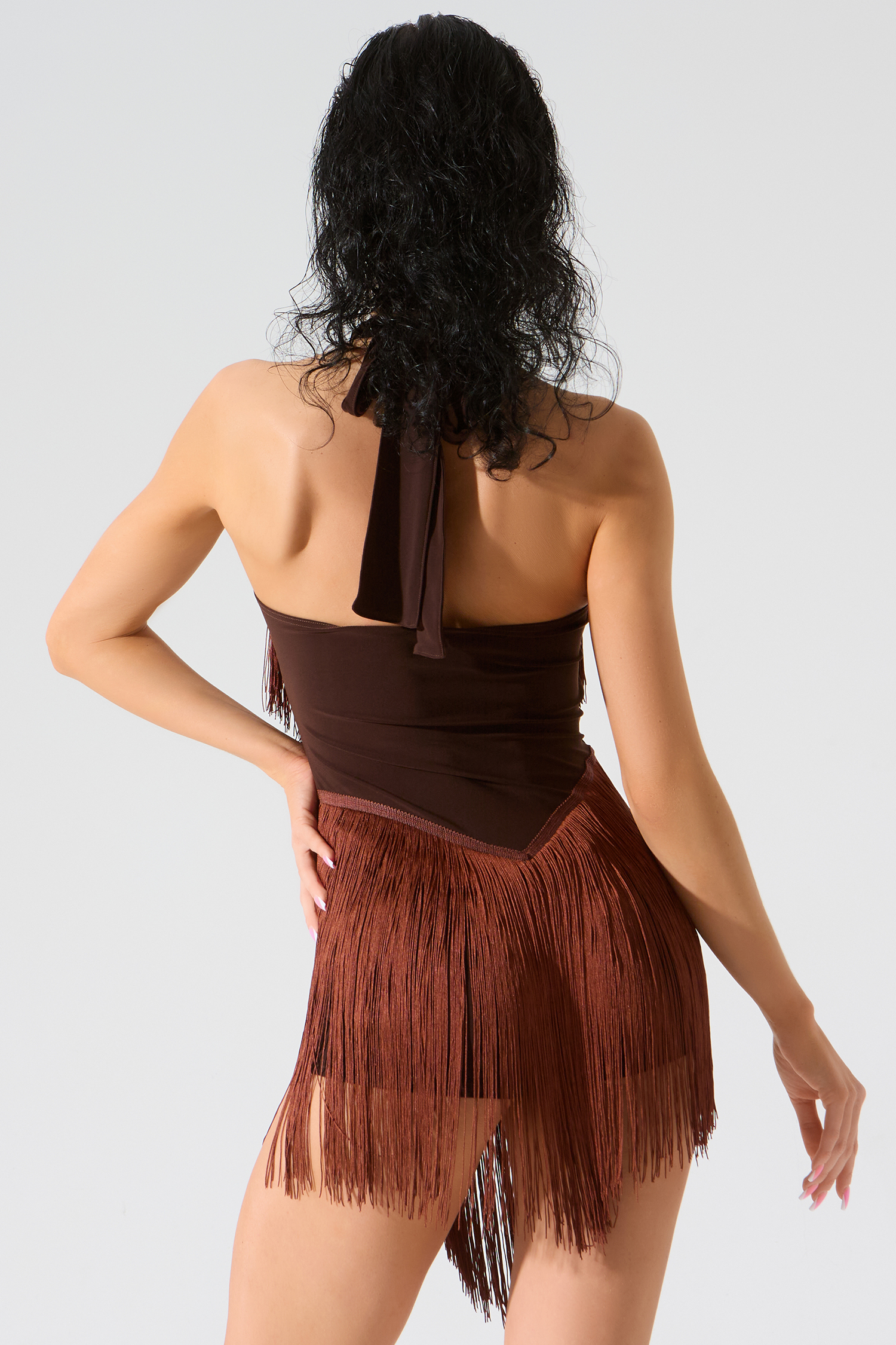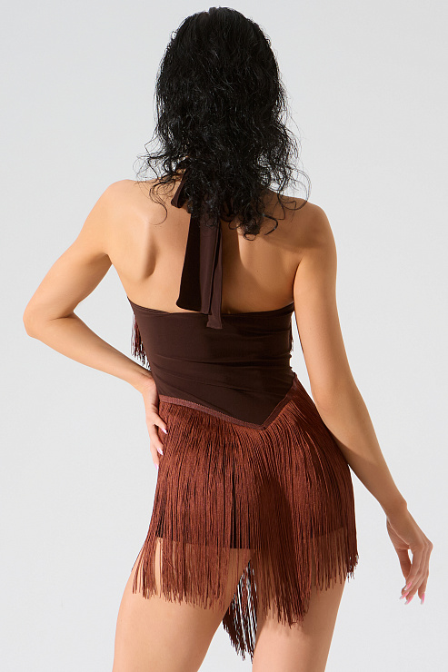 Платье с бахромой по диагонали и шортами (шоколадный)