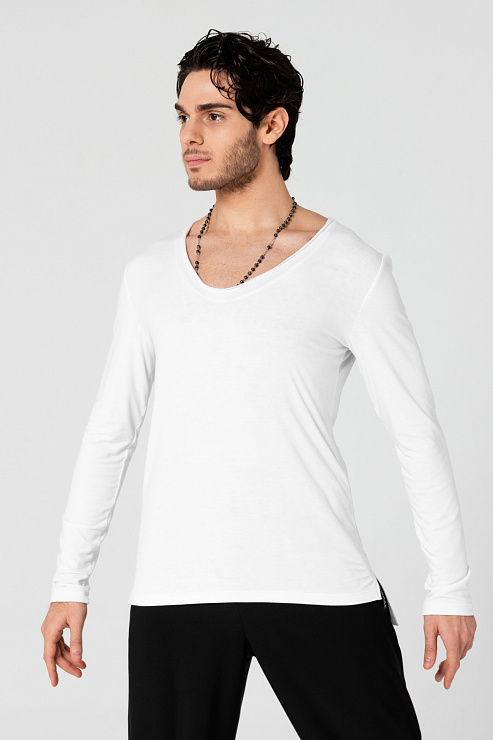 Футболка с глубоким вырезом свободного силуэта - для тех мужчин, кто предпочитает более открытыемодели. Произведена из максимально приятного к телу и тончайшего натурального полотна "бамбук", комфортного во время самых изнурительных тренировок.