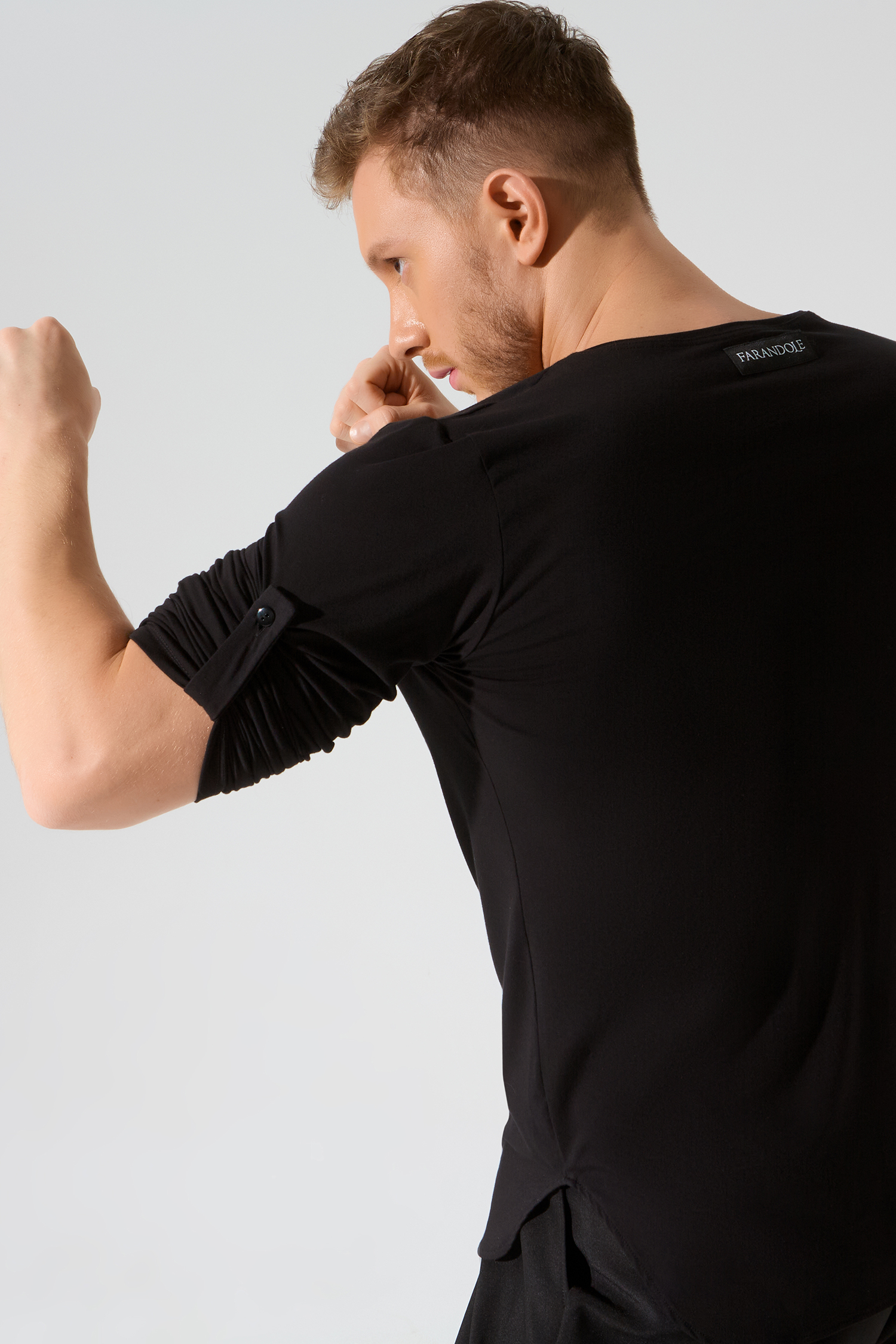 Мужской лонгслив с патами от бренда танцевальной одежды FARANDOLE — универсальная модель как для танцев, так и для повседневной жизни. Дышащий материал «бамбук» очень комфортный тактильно и практичен в носке. Паты позволяют регулировать длину рукава. Сочетайте лонгслив с любыми брюками из мужской коллекции. В коллекции CHARISMA лонгслив представлен в черном и белом цвете.
