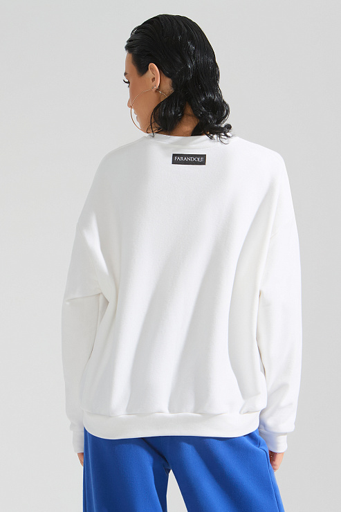 Свитшот выполнен из мягкого футера с эффектом велюра. Футер с эффектом велюра очень мягкий тактильно и обеспечивает максимальный комфорт и тепло.