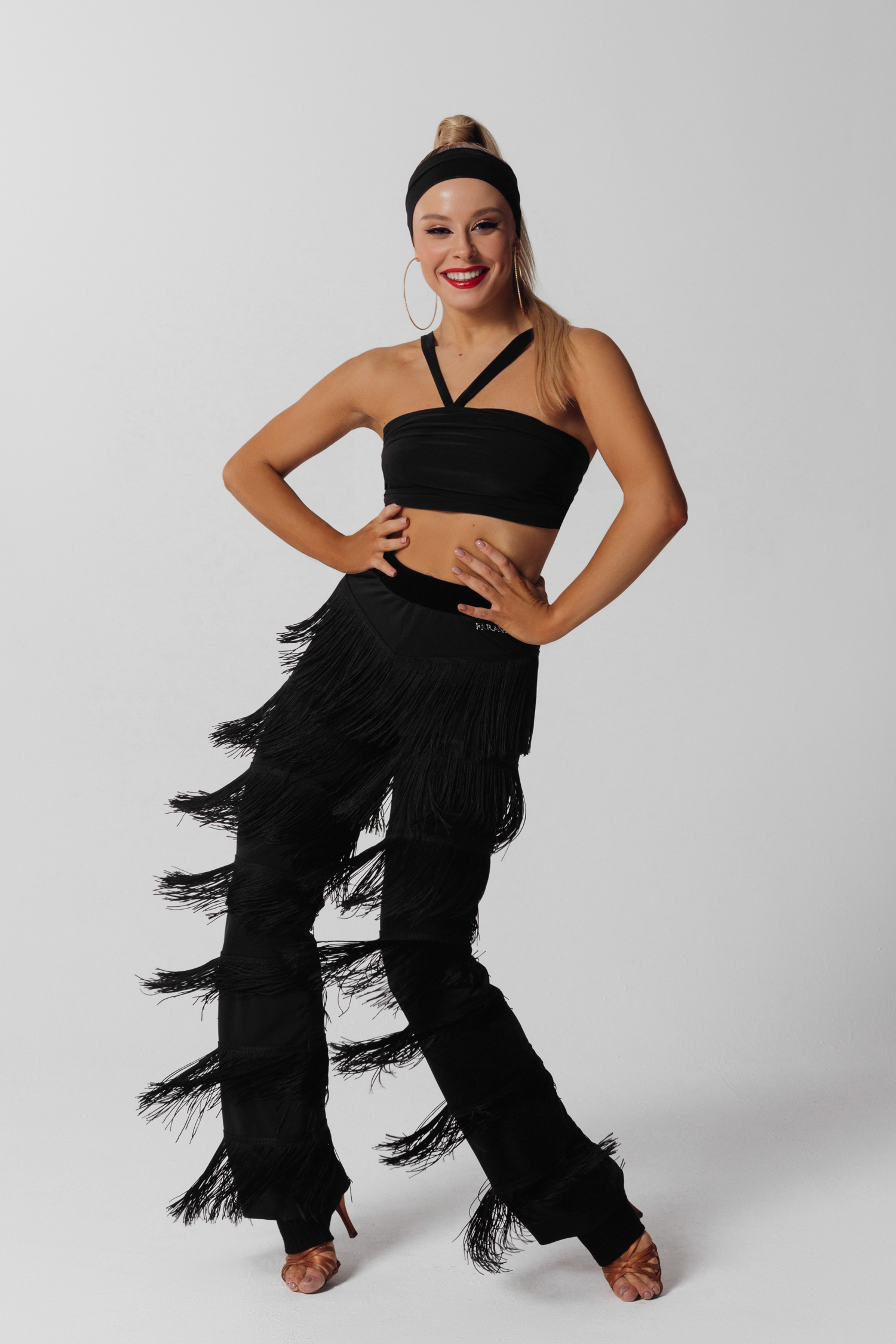 Брюки с бахромой на высокой талии