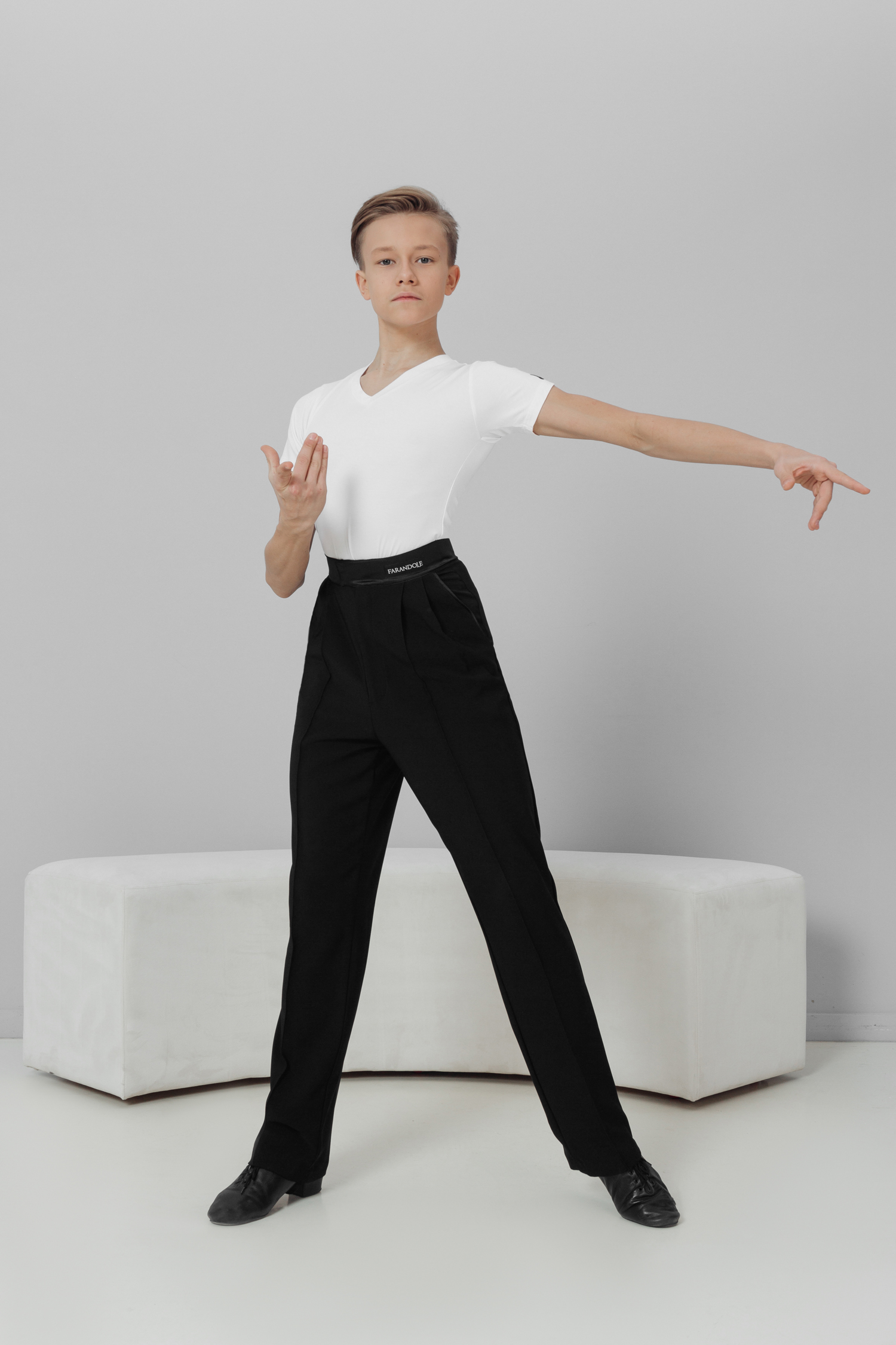 Классические брюки идеальной посадки - необходимая вещь в гардеробе каждого танцора. Пояс и карманы контрастно выделяются за счет атласной отделки. Брюки бренда FARANDOLE идеально сочетаются с любой футболкой, лонгсливом или рубашкой.