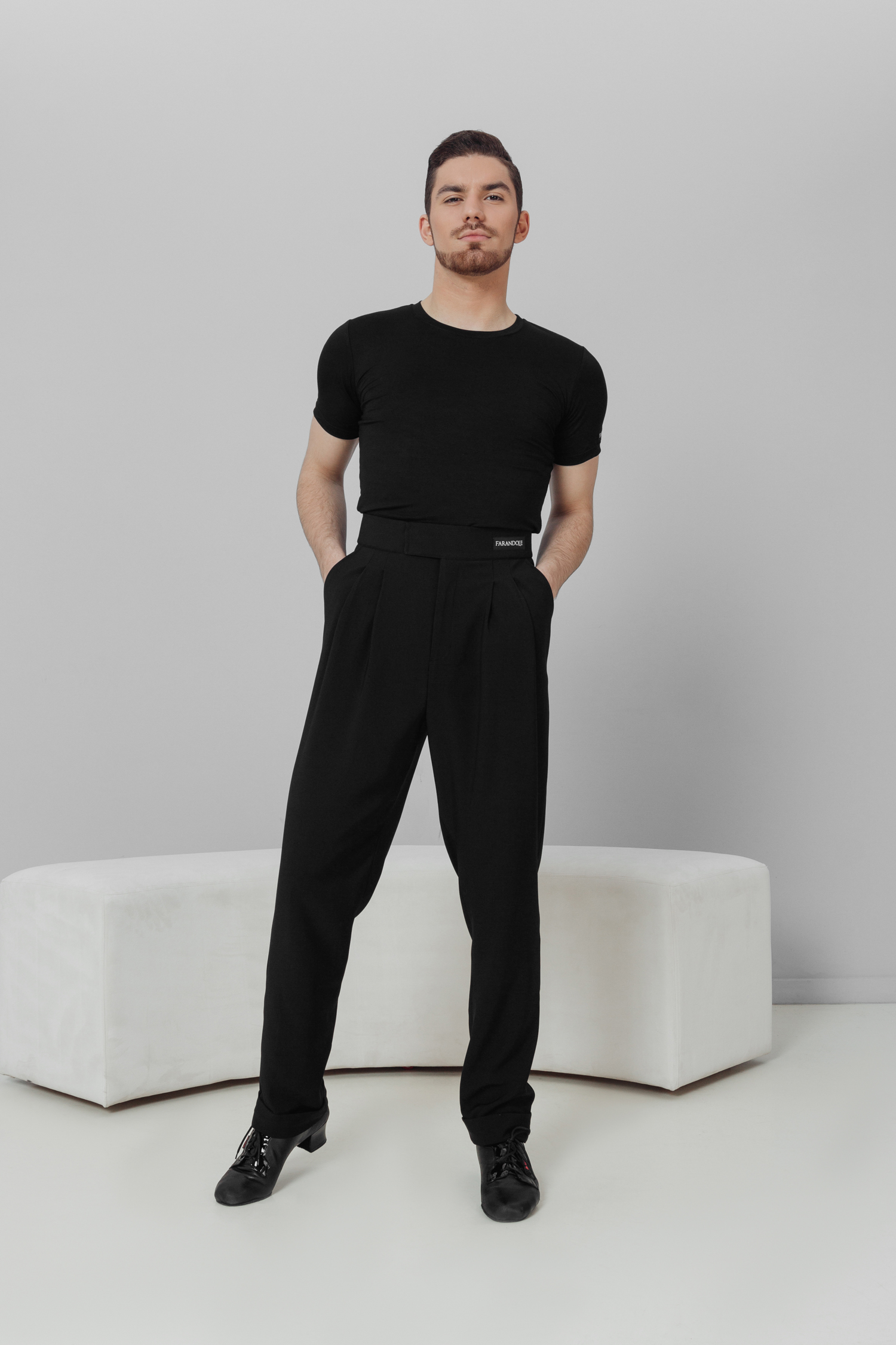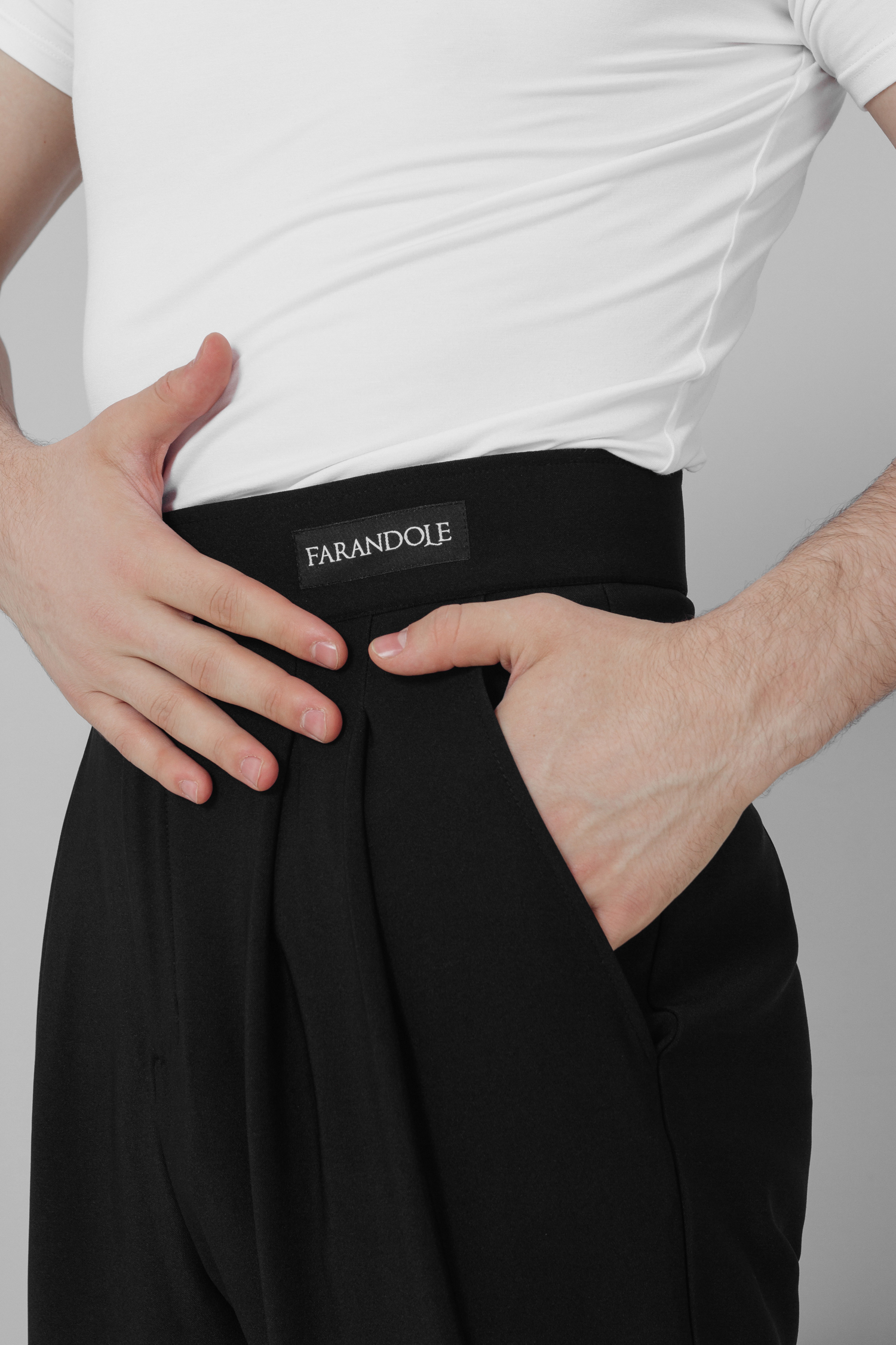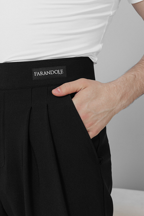 Брюки на широком поясе бренда FARANDOLE с эффектными широкими застроченными складками и с манжетами идельно садятся по фигуре и очень стильно смотрятся. Выполнены из ткани высокого качества.