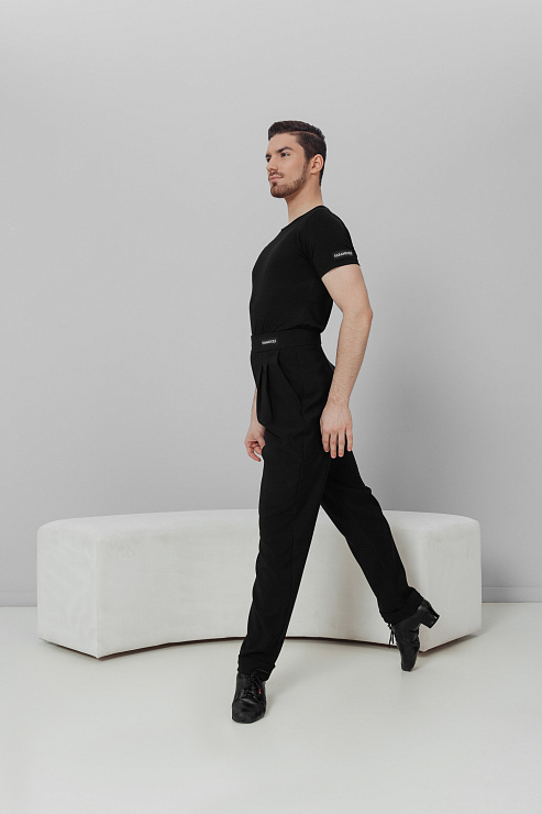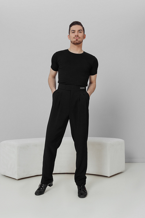 Брюки на широком поясе с застроченными складками и манжетом 441F