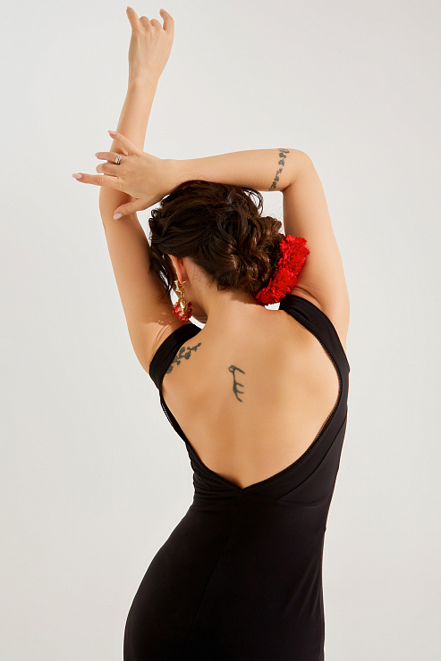 Платье с открытой спиной и разрезами — вечная классика для аргентинского танго. Разрезы сбоку и сзади дают свободу движениям и подчеркивают красоту женских ног.