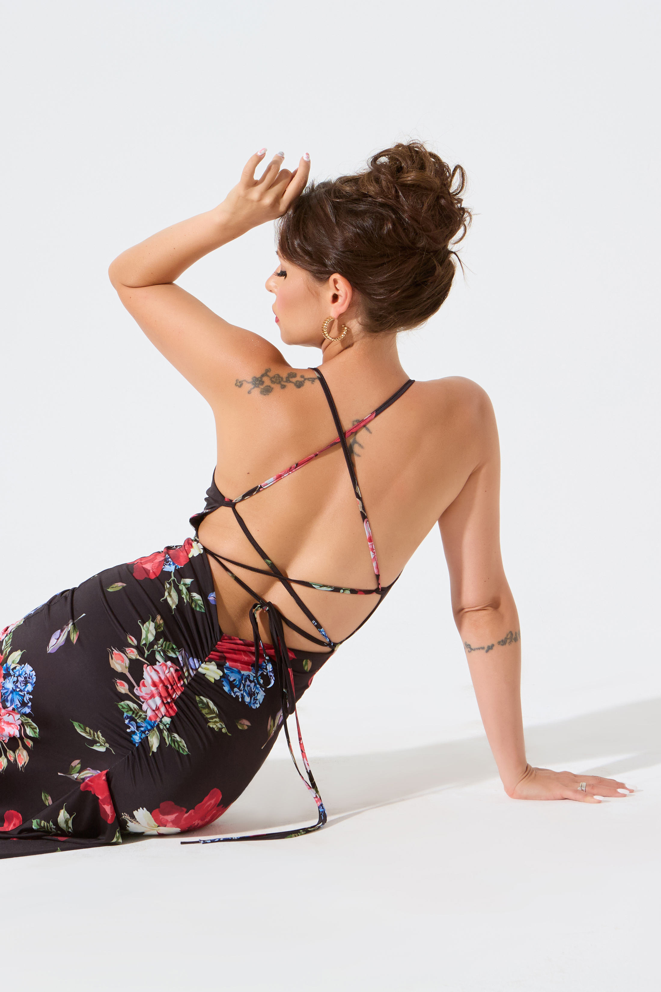 Платье с лифом и шнуровкой (цветочный принт)