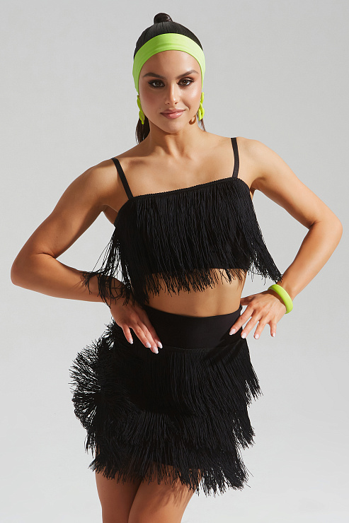 Топ укороченный с бахромой (черный)