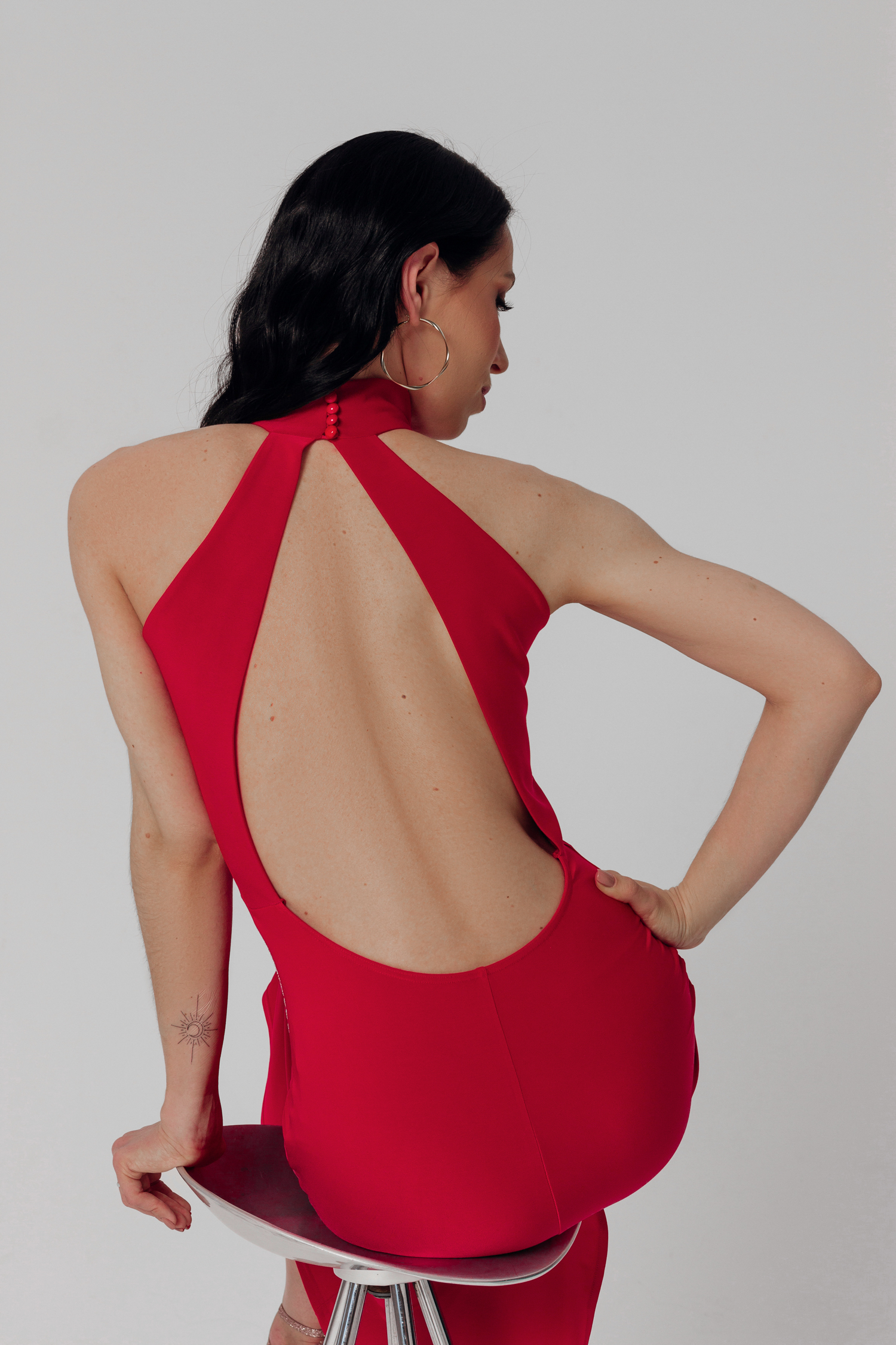 Аргентинское танго и открытая спина — такие же неразлучные понятия, как аргентинское танго и высокие разрезы. В этом платье соединилось все — красивые линии, удобный крой, невероятно красивая спинка и вшитые шортики для удобства в танце. Верх платья продуман так, что можно вложить и закрепить любые чашки.