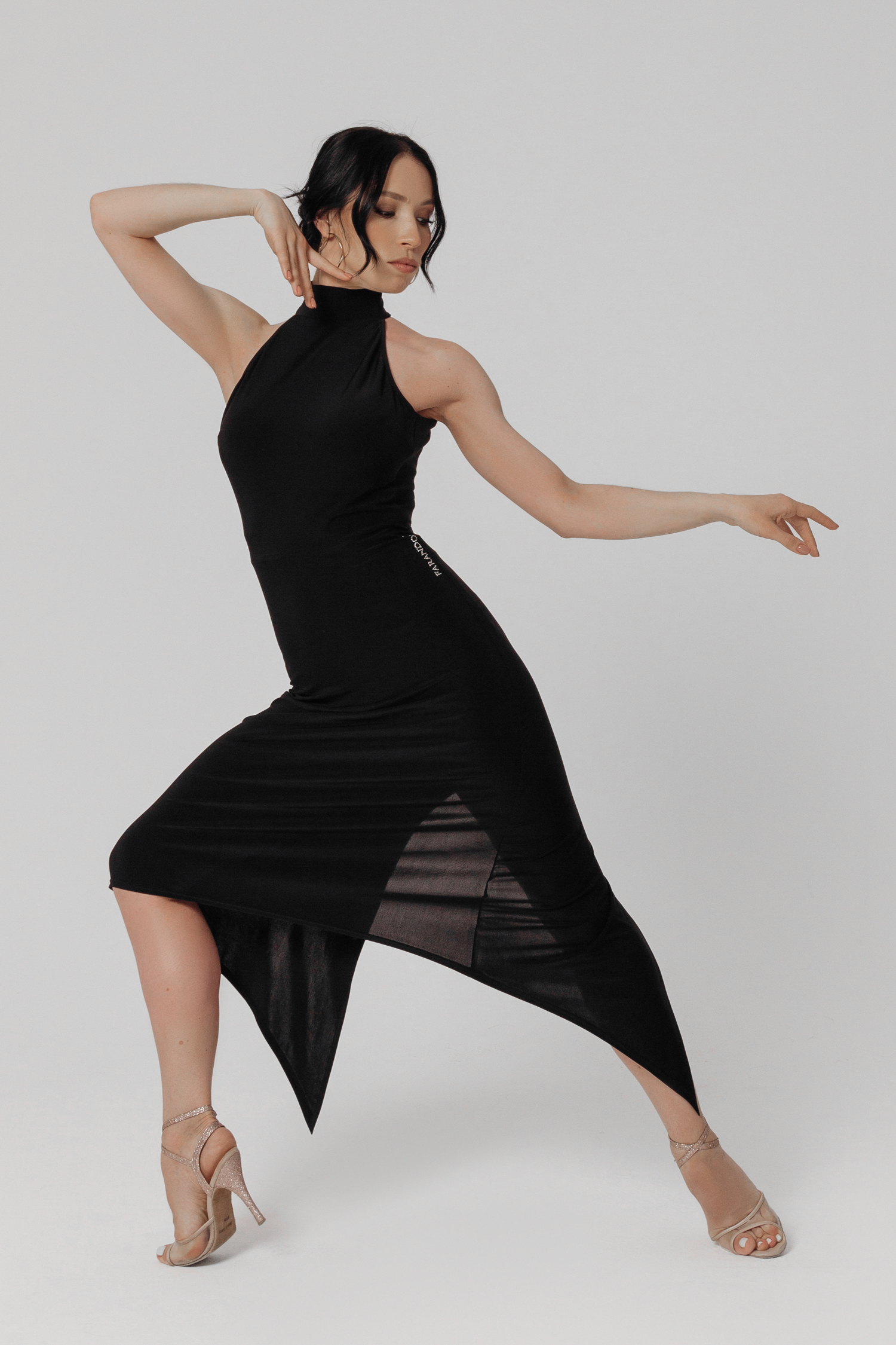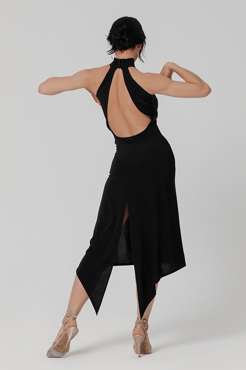 Платье для танцев танго со стойкой черное