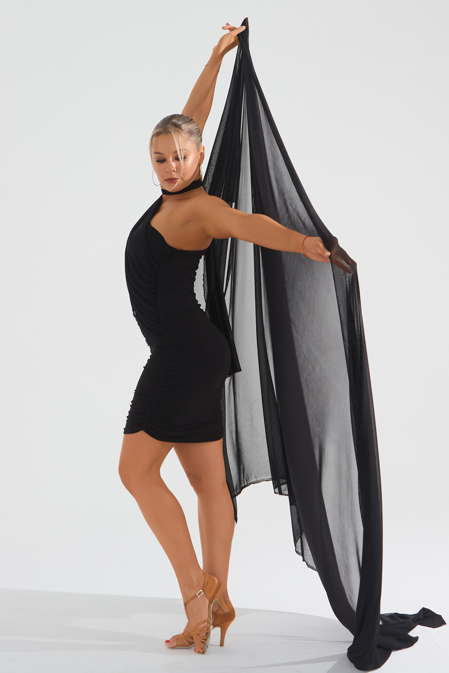 Платье мини со сборкой и летящим шарфом из сетки от бренда FARANDOLE — универсальная модель как для танцев, так и для повседневной жизни. Мягкий трикотаж очень приятен к телу, декоративная отделка из сетки и шарф — трендово, стильно и эффектно подчеркивают фигуру. В коллекции BLACK&WHITE платье представлено в черном и белом цвете.