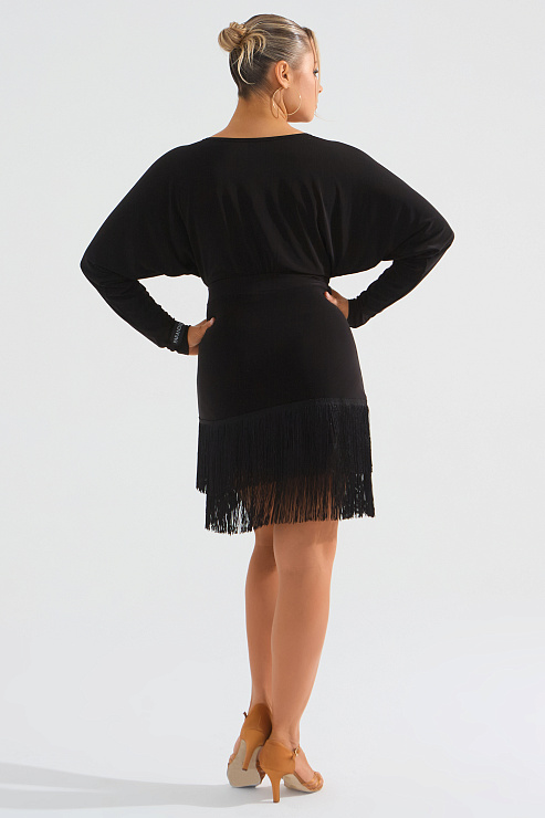 Платье с бахромой и широкими рукавами от бренда танцевальной одежды FARANDOLE — идеальная и динамичная модель для латины. Выполнен из струящегося масла и бахромы высокого качества. В коллекции BLACK&WHITE платье представлено в черном и белом цвете.
