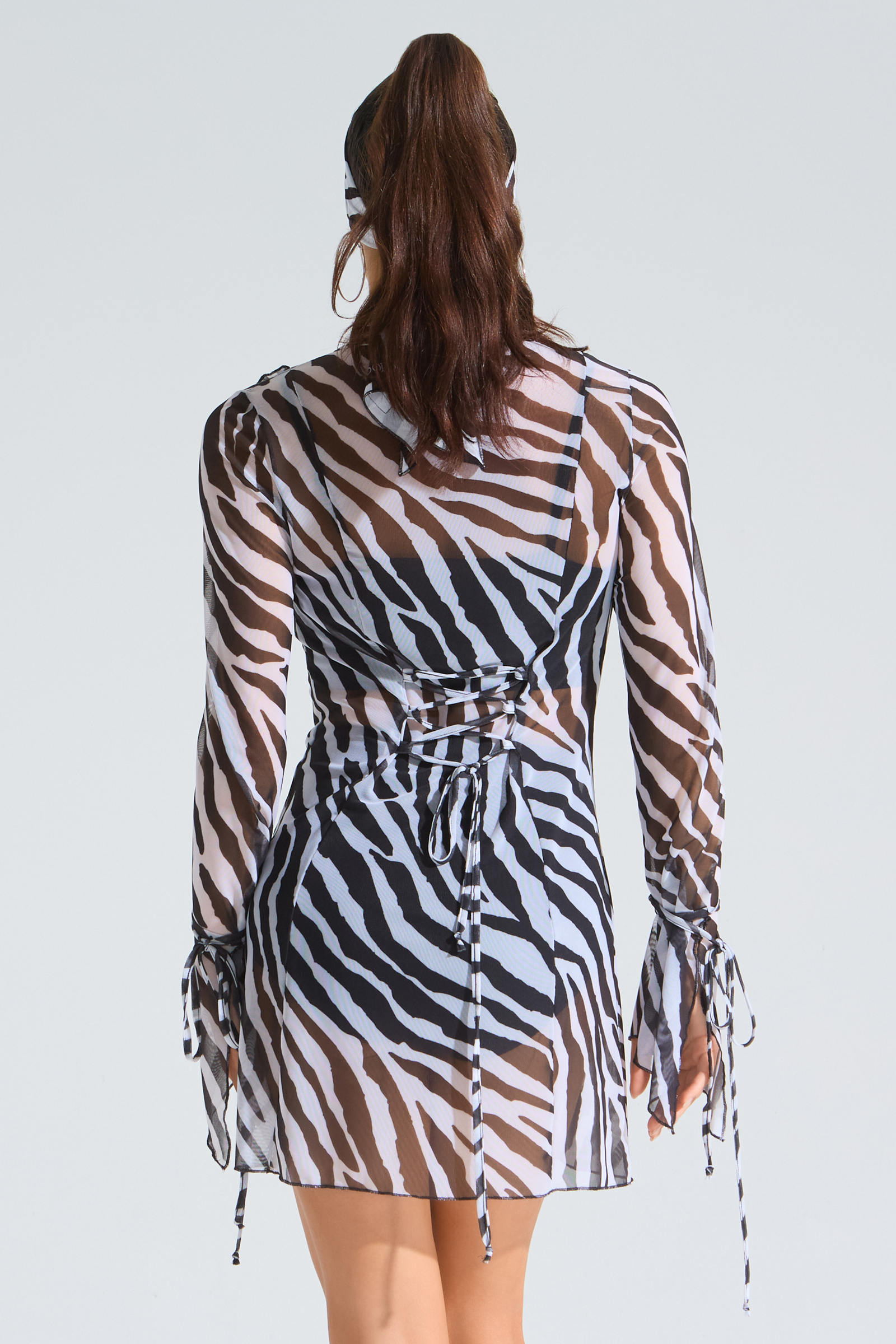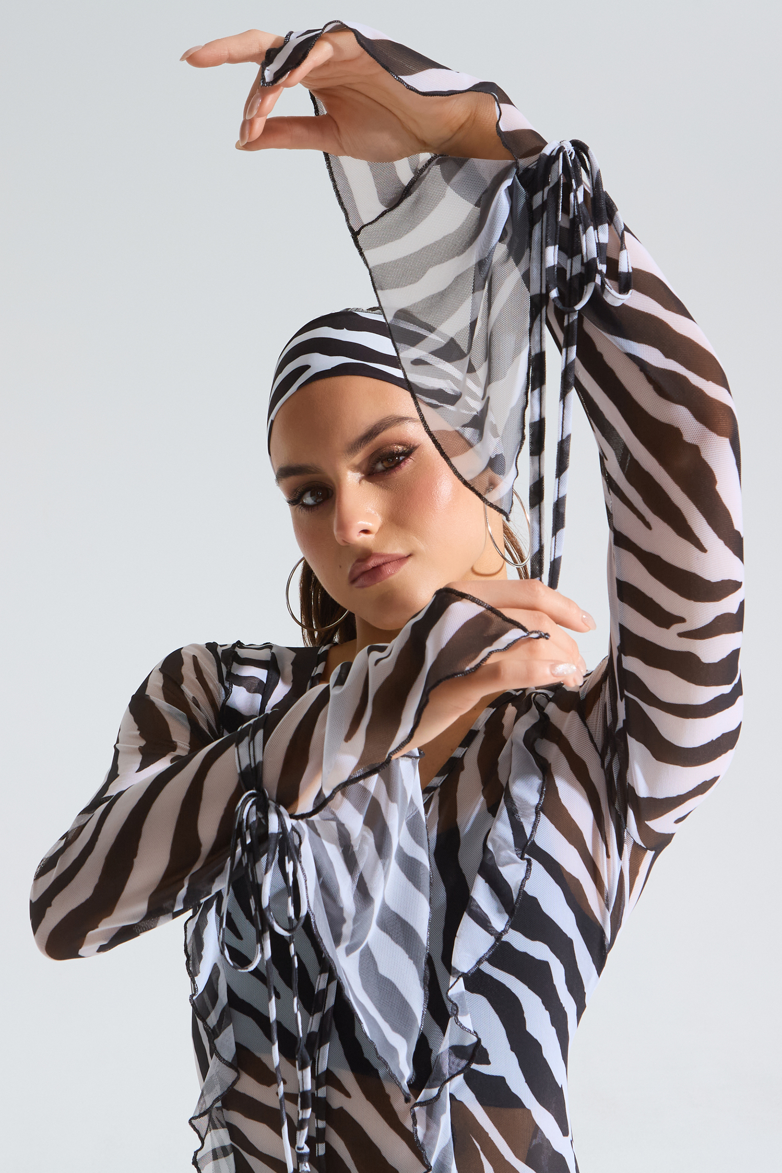 Туника из сетки с рельефами и шнуровкой (зебра)