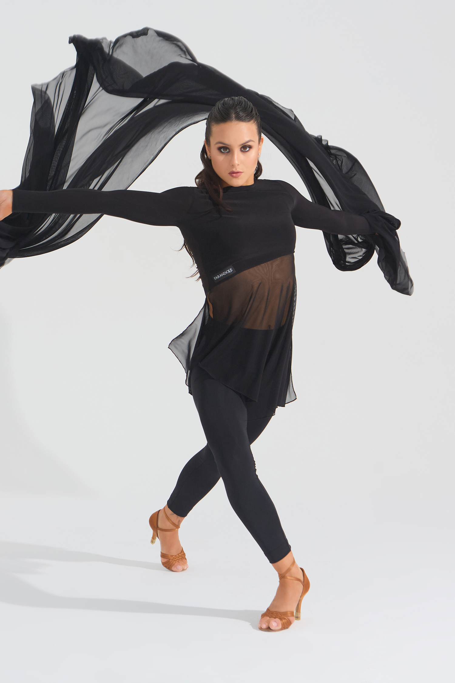 Туника с сеткой и разрезами от бренда FARANDOLE — идеальный выбор для тех, кто любит закрытые руки и спину.