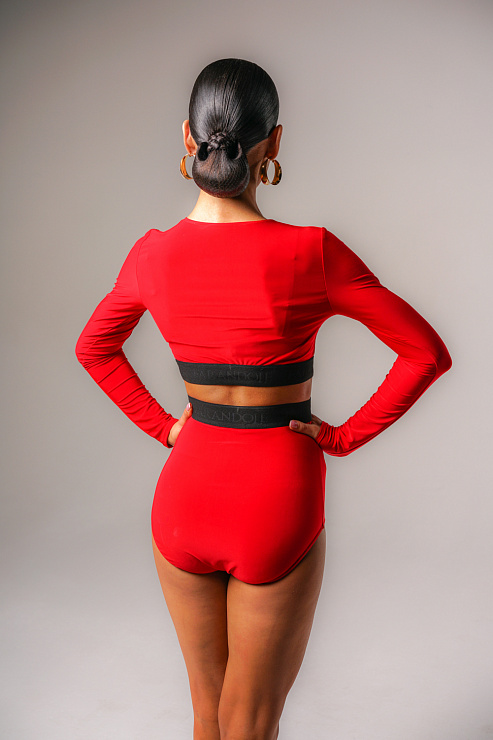 Топ с длинным рукавом укороченный (красный)