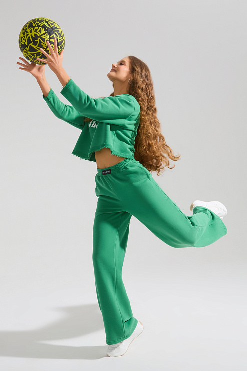 Брюки широкие с высокой посадкой (зеленый)