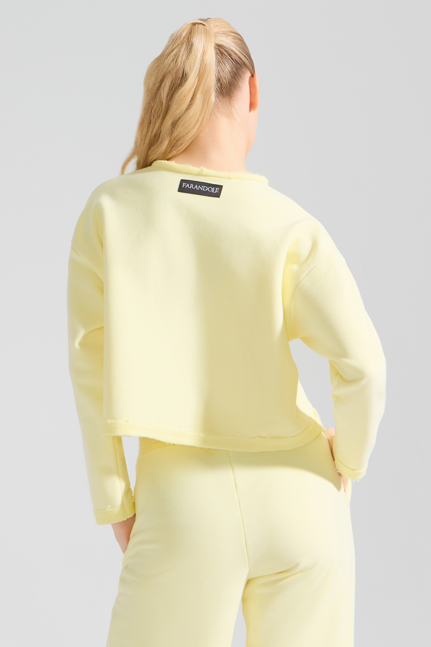 Свитшот от бренда танцевальной одежды FARANDOLE отлично смотрится костюмом в сочетании с широкими брюками, а также отдельно в сочетании с легинсами или шортами.