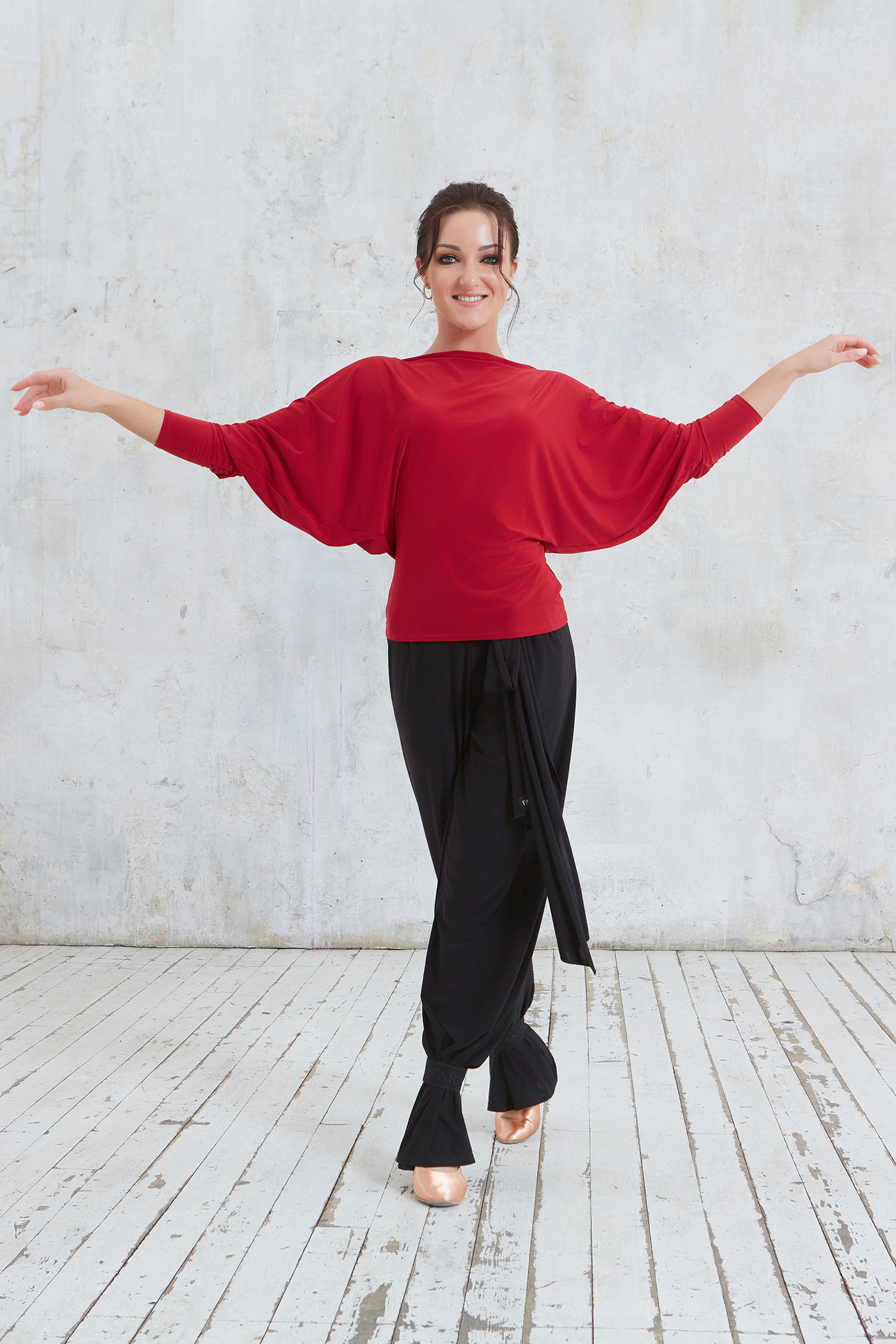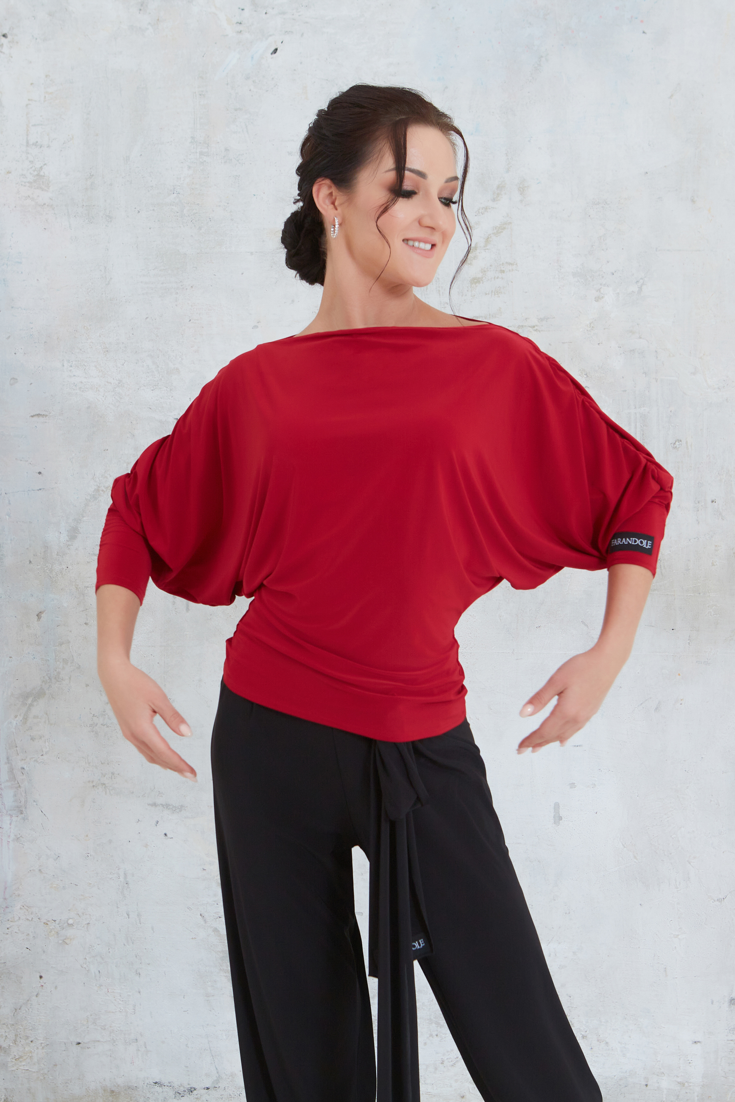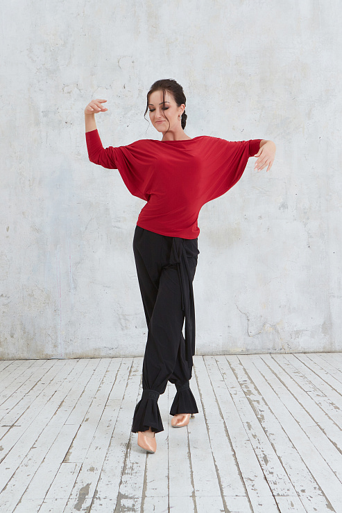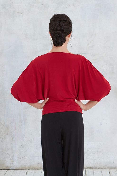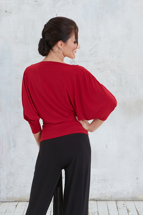 Блузка летучая мышь со сборкой на рукавах (бордо)