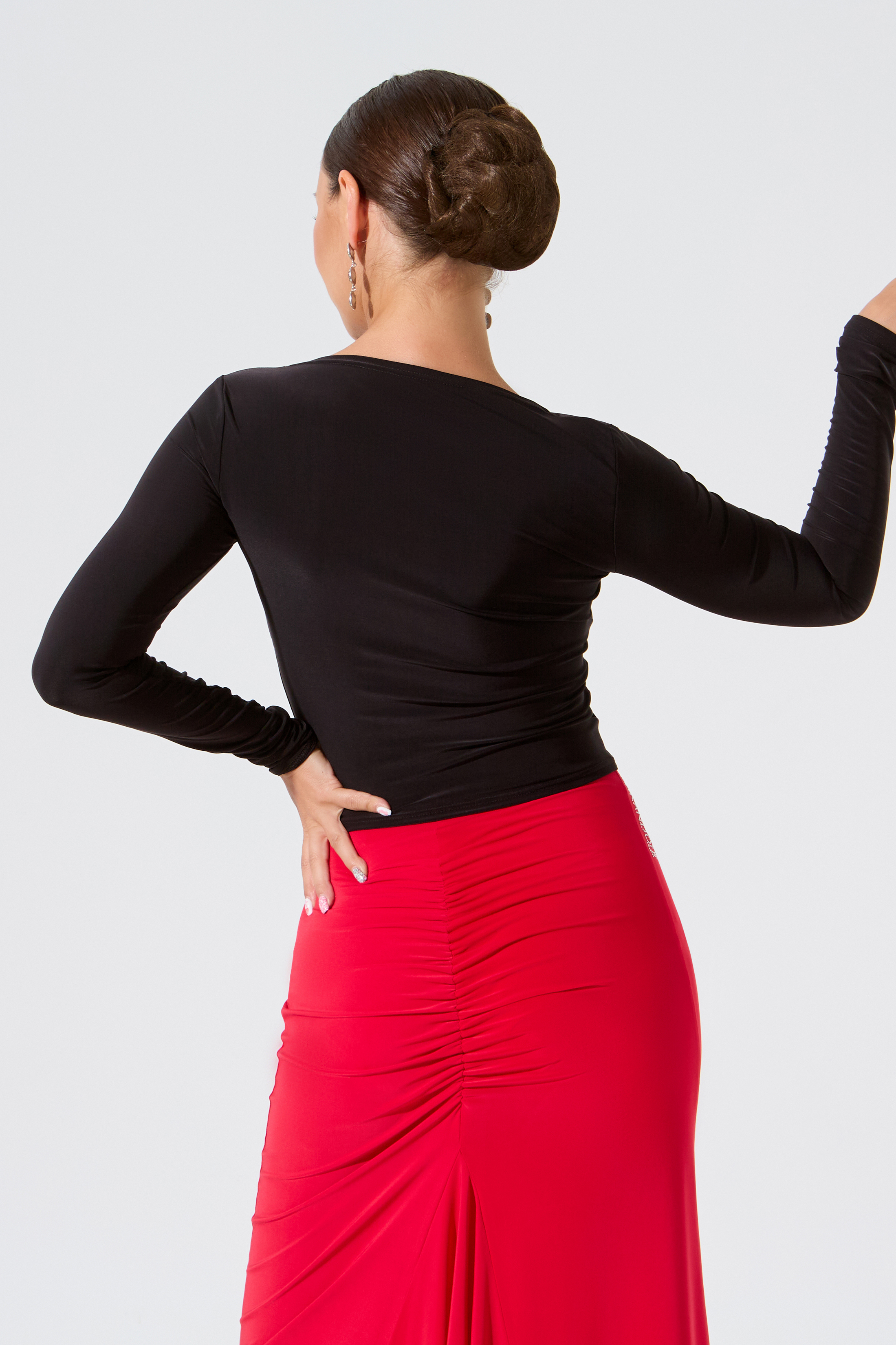 Блузка от бренда танцевальной одежды FARANDOLE с вырезом «лодочка» — универсальная модель для любого вида танца и для повседневных образов.