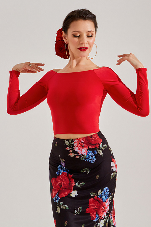 Блузка с заниженной линией плеча (красный)