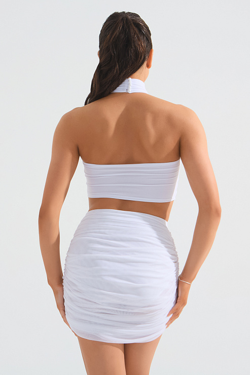 Топ со сборкой на лифе от бренда FARANDOLE — невероятной красоты модель, сочетающая в себе красивую открытую спину, элегантную стойку, эффектную сборку на лифе и полупрозрачную сетку.