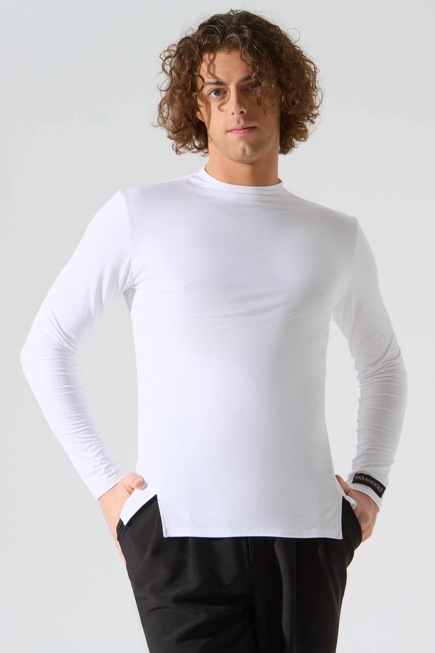 Мужская водолазка с разрезами от бренда танцевальной одежды FARANDOLE — универсальная модель как для танцев, так и для повседневной жизни. Дышащий материал «бамбук» очень комфортный тактильно и практичен в носке. Сочетайте водолазку с любыми брюками из мужской коллекции. В коллекции CHARISMA брюки представлены в черном и белом цвете.