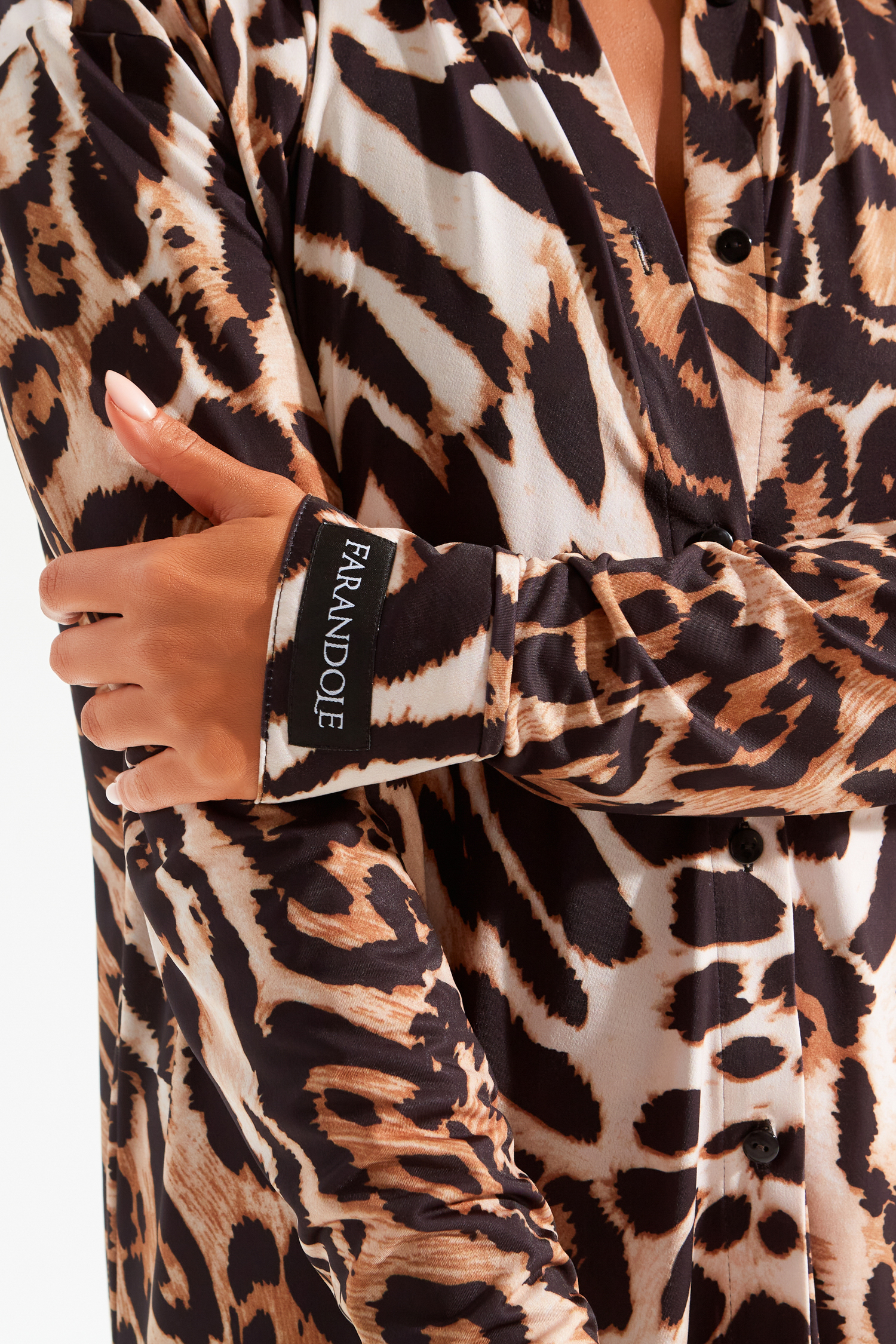 Тренд сезона — рубашка в мужском стиле. Выполнена из очень приятной тактильно тонкой микрофибры. Закругленные разрезы и удлиненная спинка придают образу женственный силуэт. В коллекции SAVAGE рубашка представлена в эффектном хищном принте.
