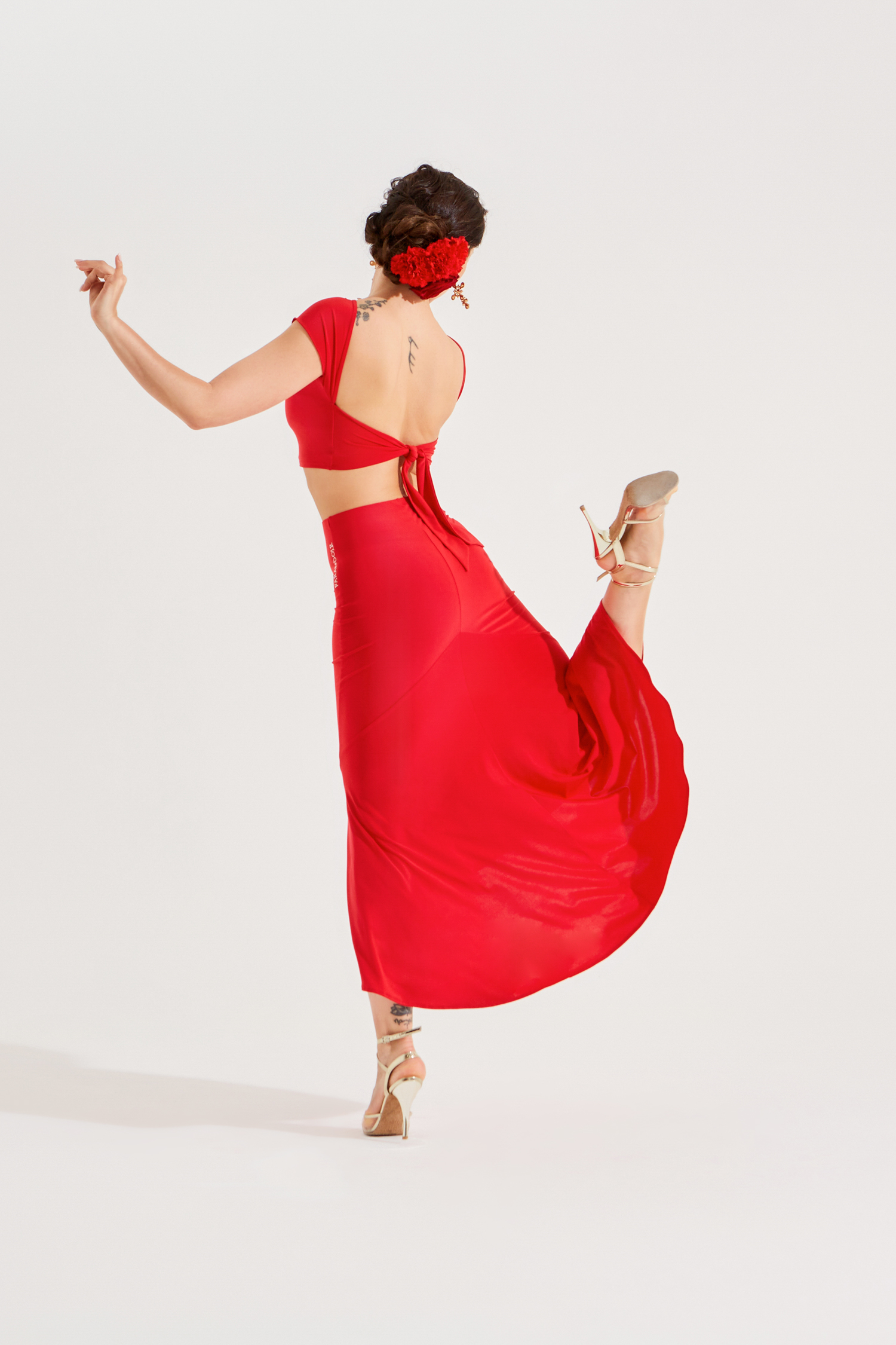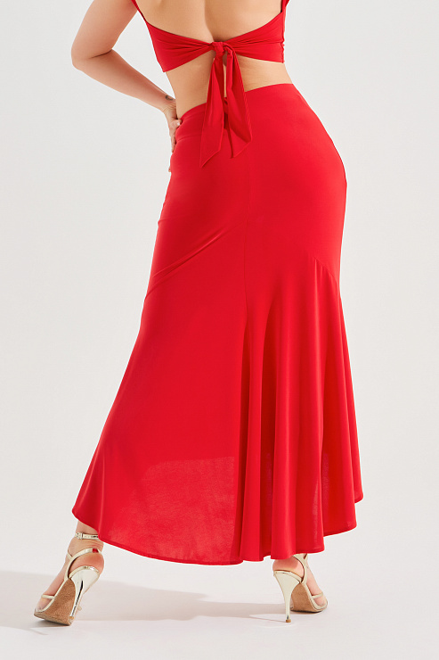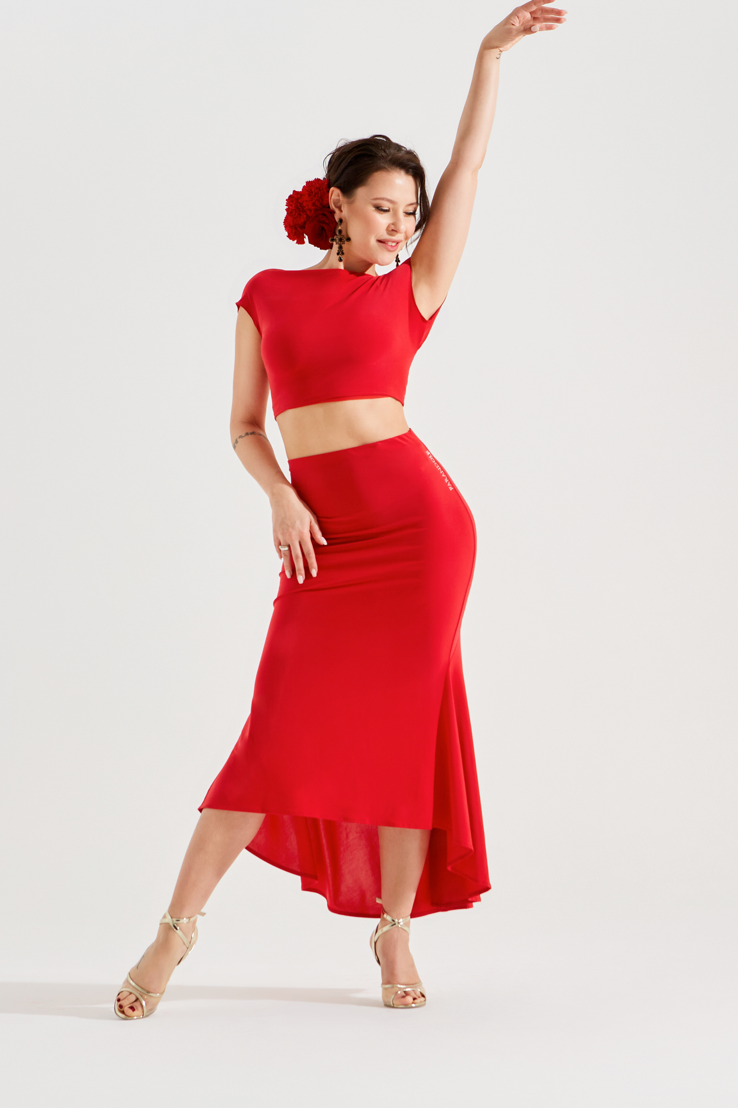 Юбка для танго с двумя большими клиньями и расширением по низу очень эффектна в движении. Идеально сочетается с любыми топами или боди из танго коллекции. В комплекте с боди такого же цвета комплект смотрится целостно как платье.