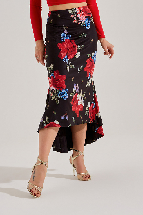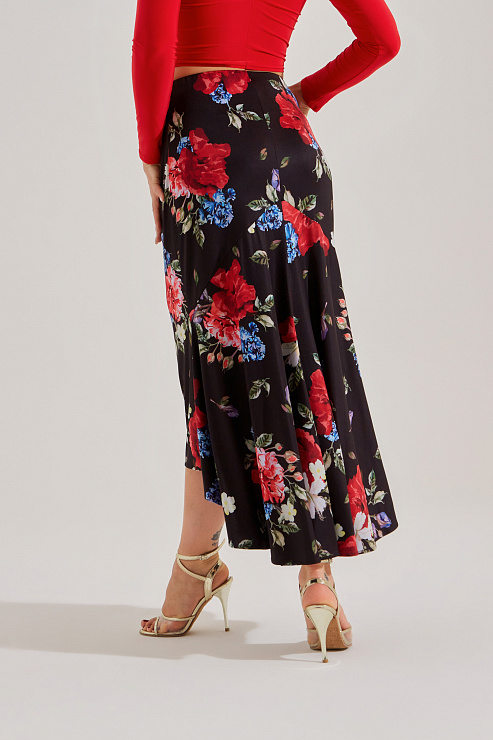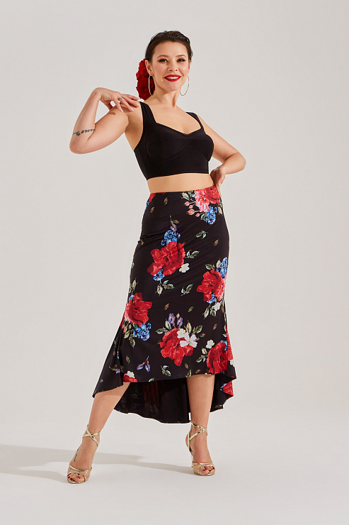 Юбка для танго с двумя клиньями (цветочный принт)