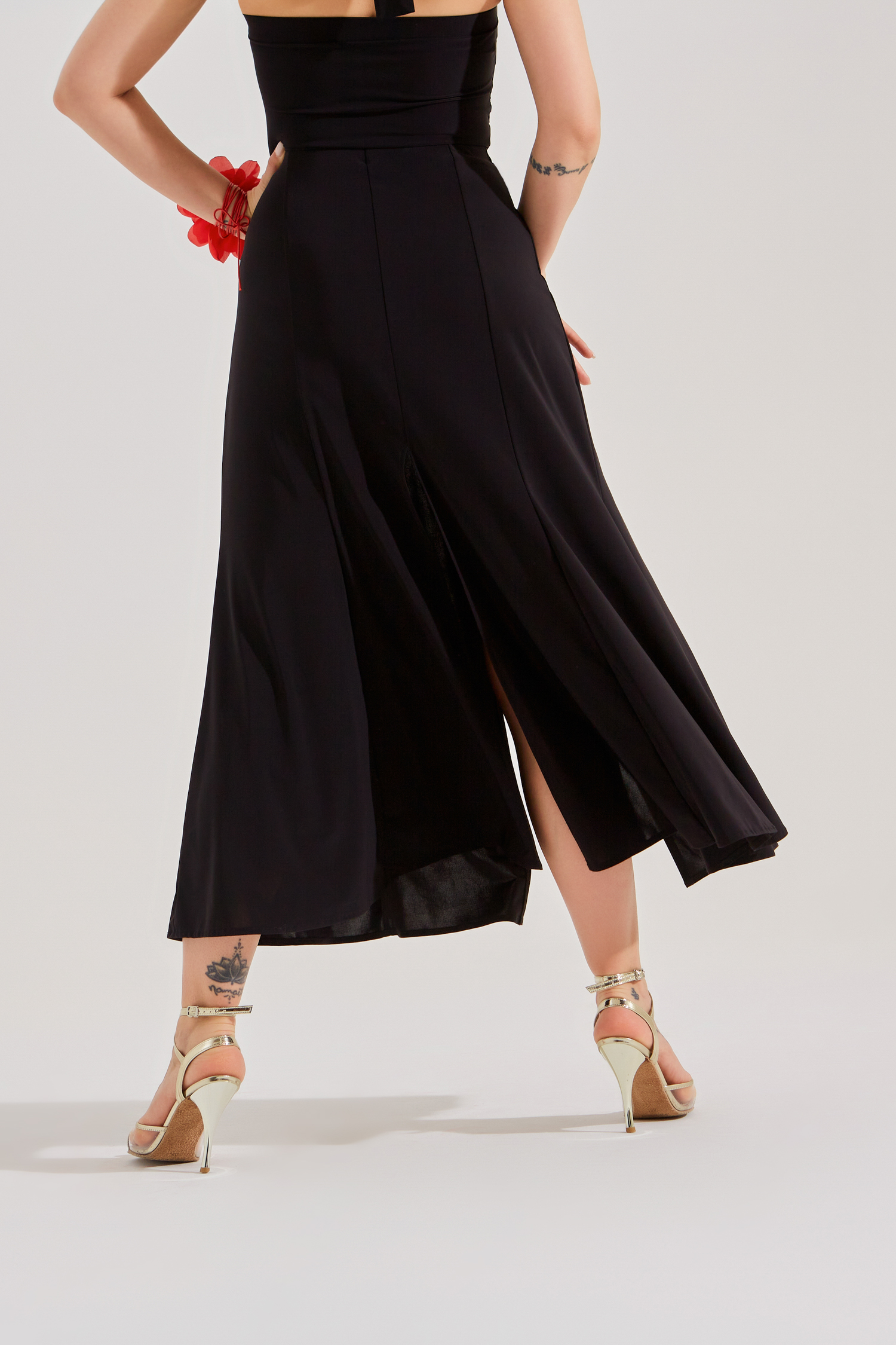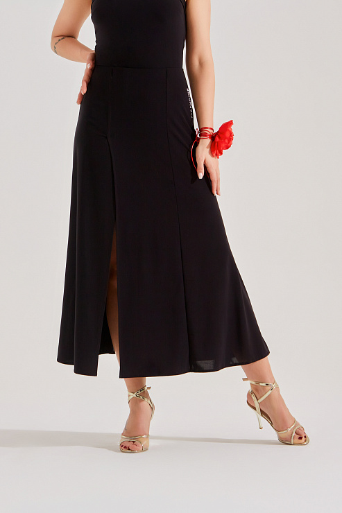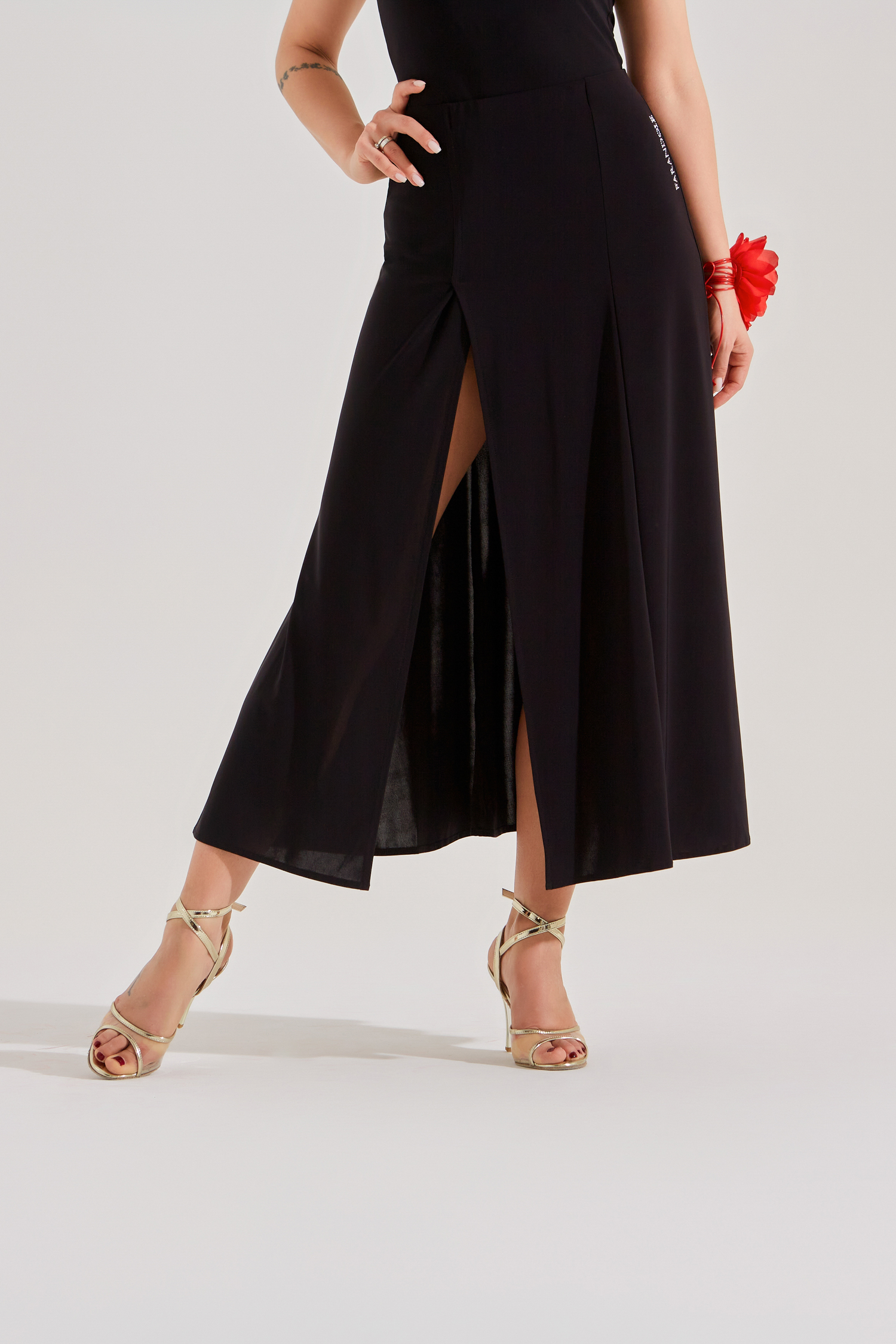 Юбка для танго со шлицей имеет очень оригинальную конструкцию. Внешне довольно сдержанная и строгая модель, но в движении шлица очень красиво открывает ногу. Красиво сочетается с любым топом, блузкой или боди из коллекции DOLCE TANGO.