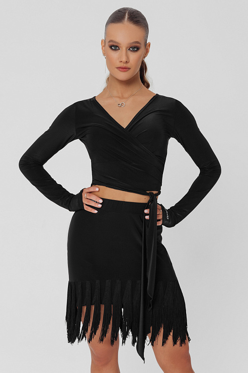 Юбка "мини" с пришитой по диагонали бахромой очень эффектно и объемно смотрится в танце. В юбку вшиты трусы, что обеспичит максимальный комфорт во время тренировок. Сочетайте юбку с любым кроп-топом, боли или майкой "оверсайз". Состав: 85% полиэстер, 15% эластан