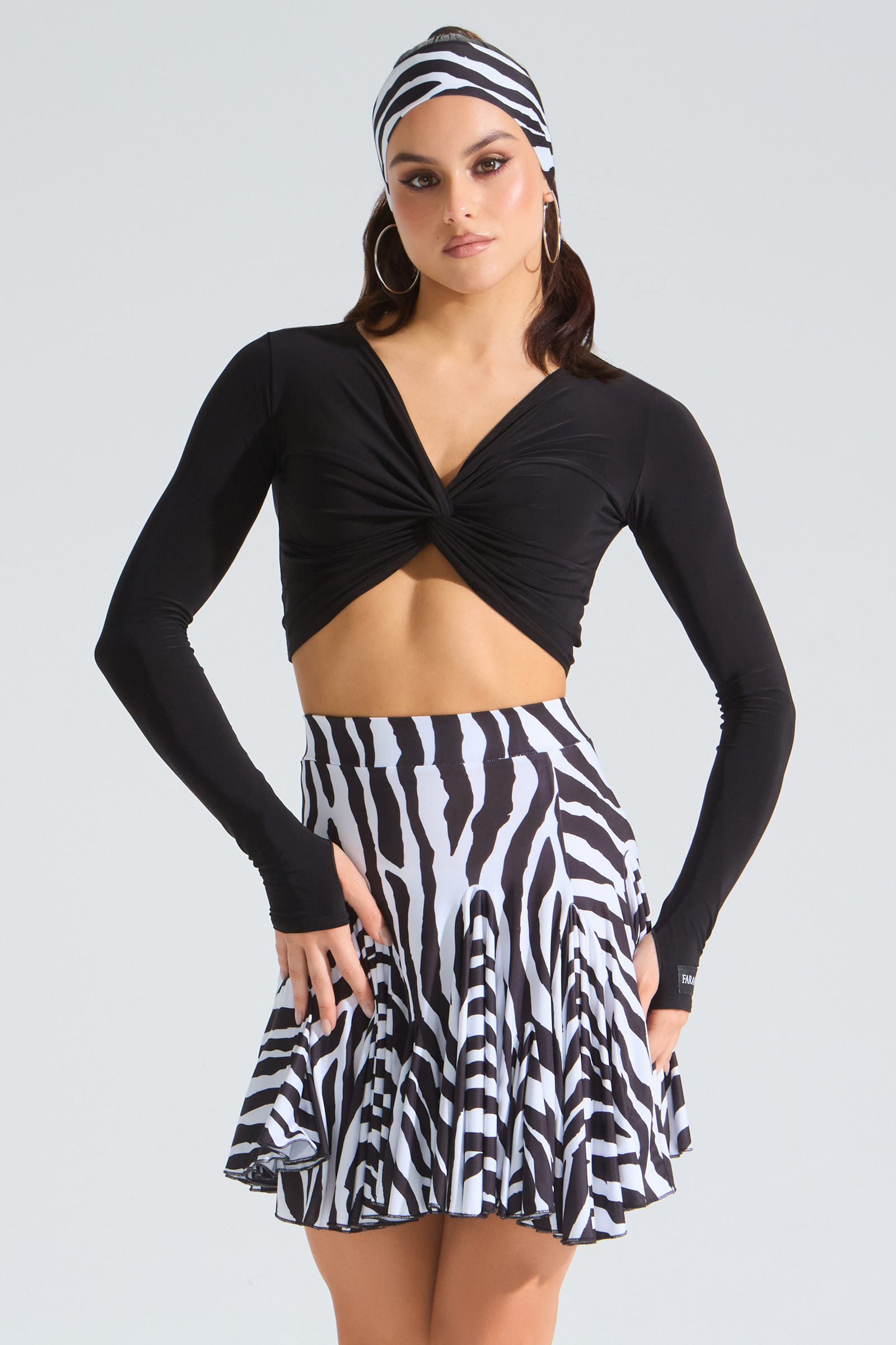 В коллекции JUNGLE юбка с кулисками представлена в эффектном зебра принте.