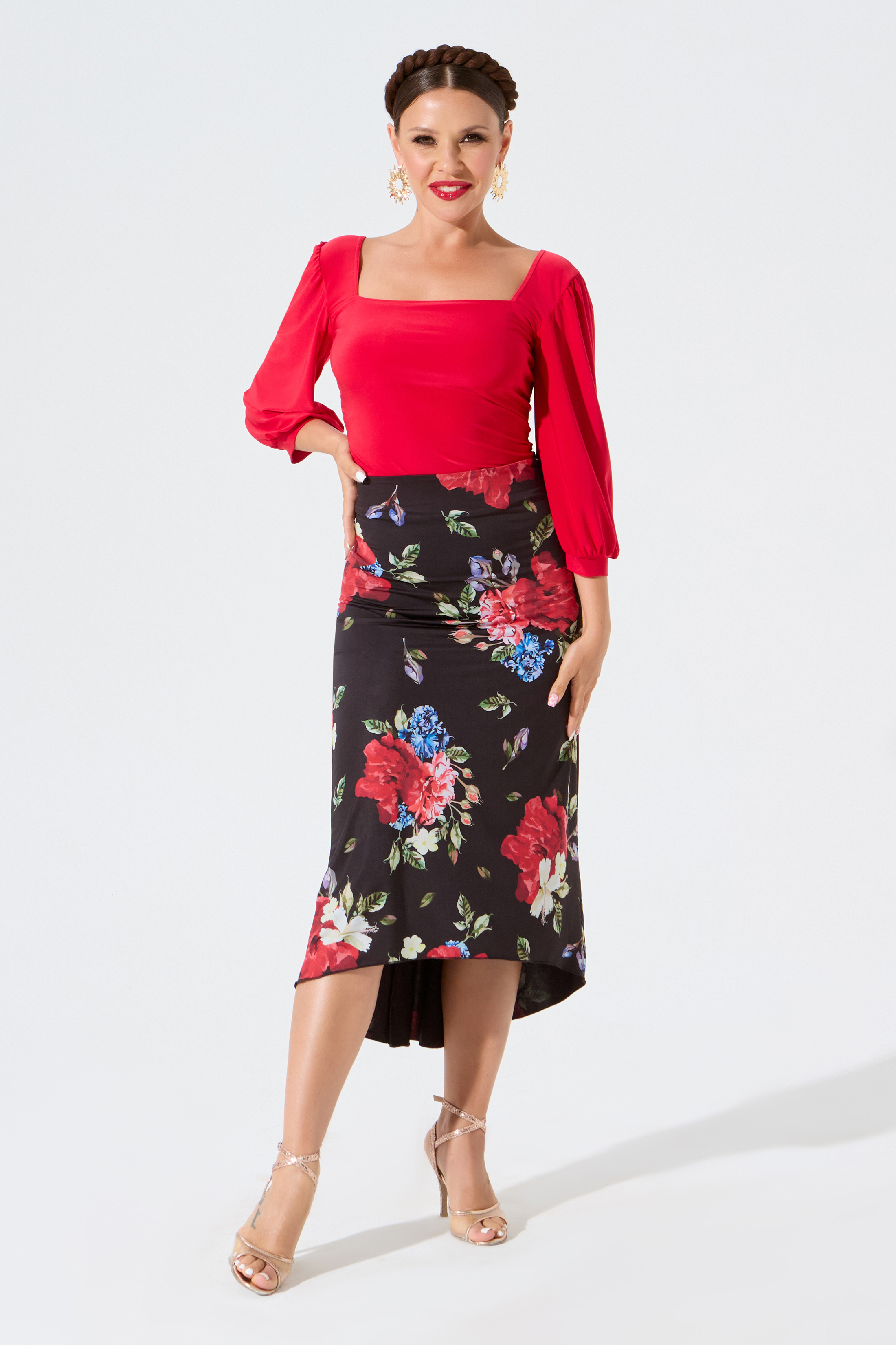 Юбка для танго с большим клином очень эффектна в движении. Идеально сочетается с любыми топами или боди из танго коллекции. В комплекте с блузкой такого же цвета комплект смотрится целостно как платье.