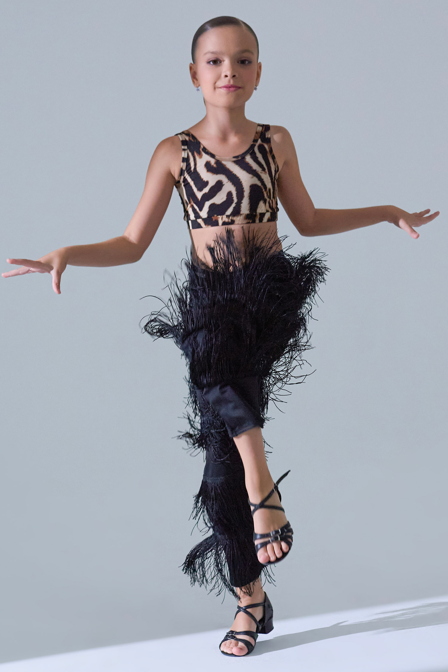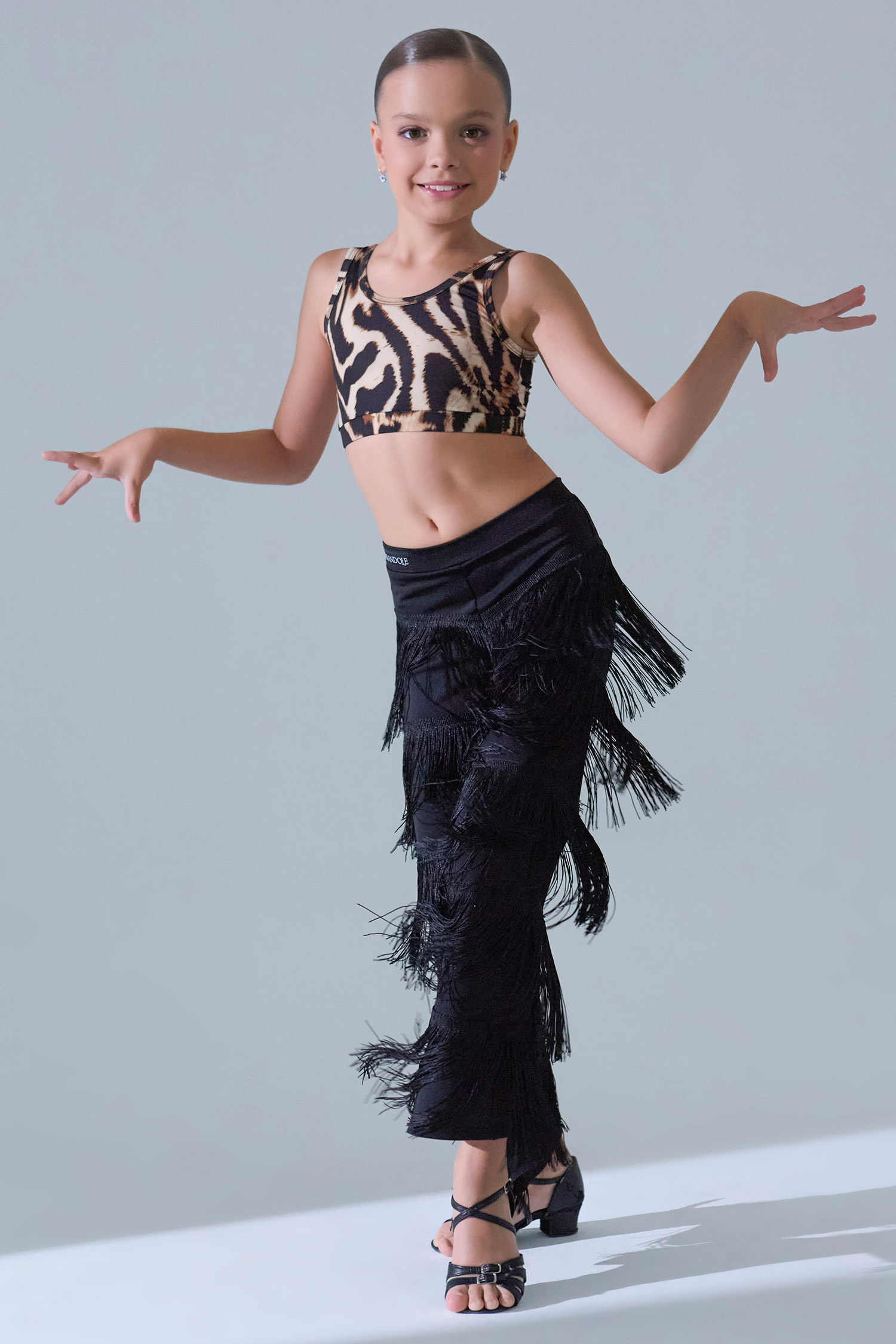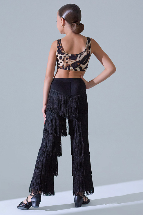 Детские танцевальные брюки с бахромой, придающие невероятную динамику танцу! Брюки с бахромой от бренда танцевальной одежды FARANDOLE с прекрасная посадкой на высокой талии, красивым бархатным поясом и игривой бахромой сделают эту модель одной из самых любимых вещей для латинских танцев, особенно для танца самба.