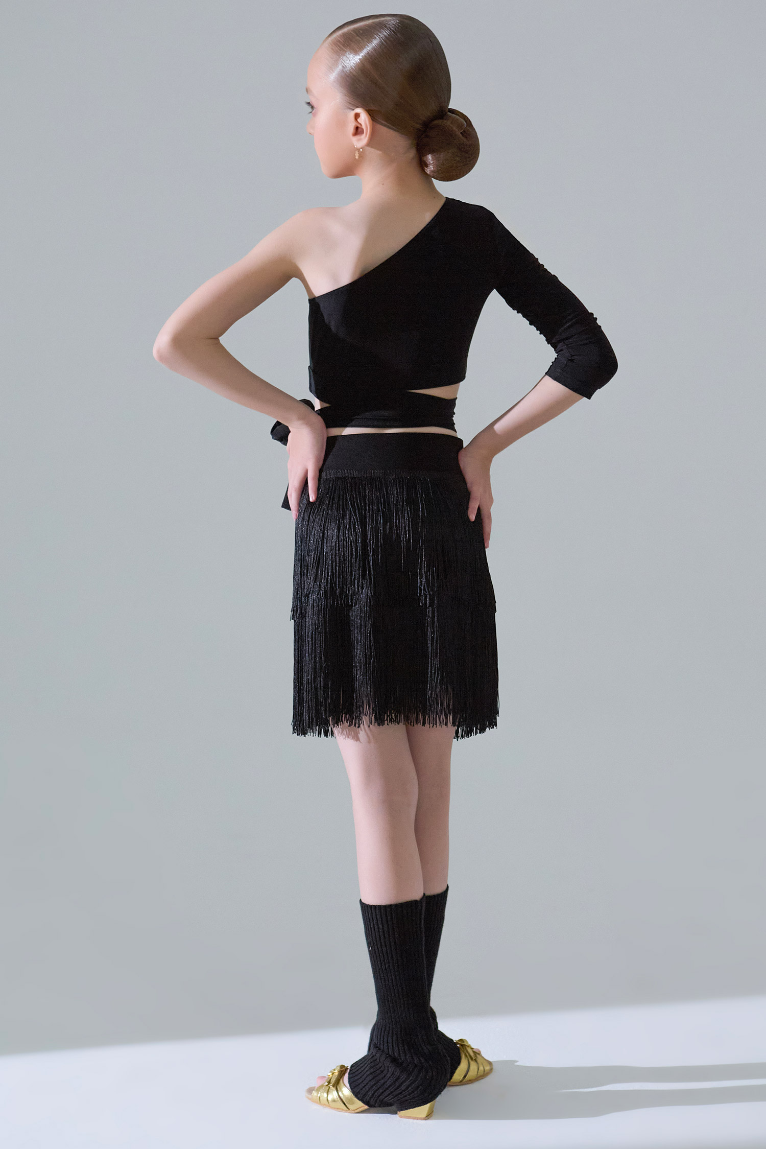 Юбка мини детская с бахромой (черный)